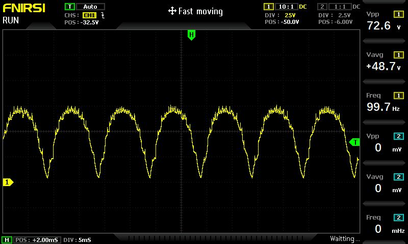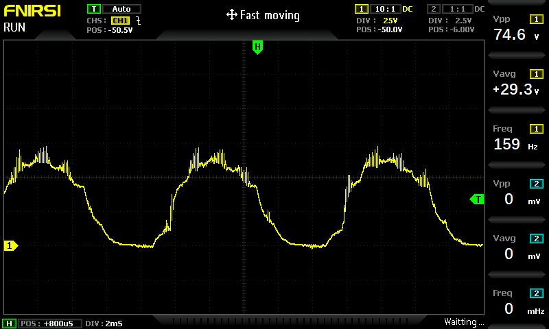 Was gibts da nicht zu kapieren wenn auf dem Bild 300Vdc dranstehen. Oder willst Du mir jetzt erzählen, daß ich nicht weiß was DC bedeutet? Und das was da vom Käfer auf dem Bild zu sehen ist, sind auch keine 300Vdc, sondern 48V Sinus-Halbwellen, wobei die Bezeichnung Sinus eigentlich als grobe Irreführung zu werten wäre. Das ist ja fast mehr Rauschen als Sinus.