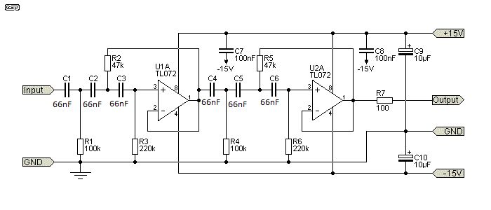 dann lass ich halt einfach C9 und C10 weg. und die Audio-Eingangsmasse muss doch mit der Audio-Ausgangs-Masse verbunden sein bei so einem Filter? Wie soll das sonst funktionieren?