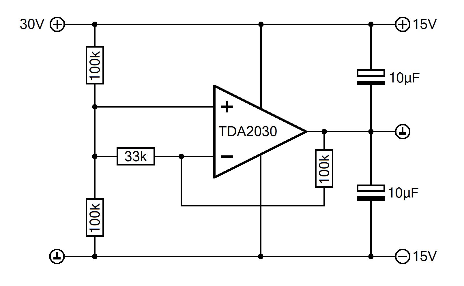 Der 2030 wird schwingen. da muss man den Eingang noch weiter absenken und die Verstärkung auf min. 10 oderso erhöhen. Ist zwar kein Rail2Rail Typ - muss ja aber auch nicht.