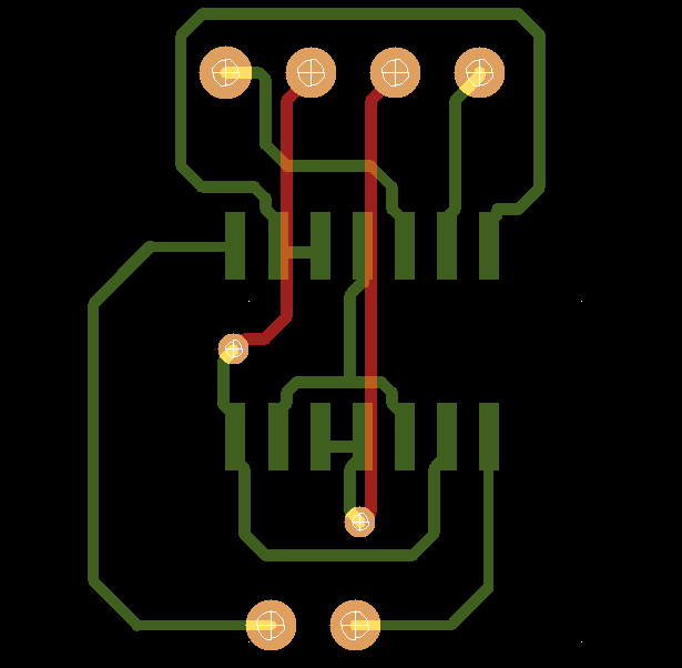 Roland F. schrieb: > Und mit 2 Minuten zusätzlicher Arbeit könnte man aus > der zweiseitigen eine einseitige Platine machen... Ohne Bahnen zwischen den Pads zu verlegen und ohne Riesenbögen außenrum? Zeigen.