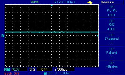 Stefan Kraft schrieb: > Im Screenshot sieht man die gemessene Versorgungsspannung. > Gemessen vor > dem 270 Ohm Widerstand. Der richtige Umgang mit dem Oszi ist dir noch fremd. Sowas misst man AC-gekoppelt, und mit <1V/div.