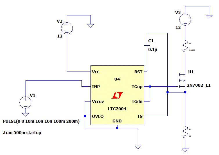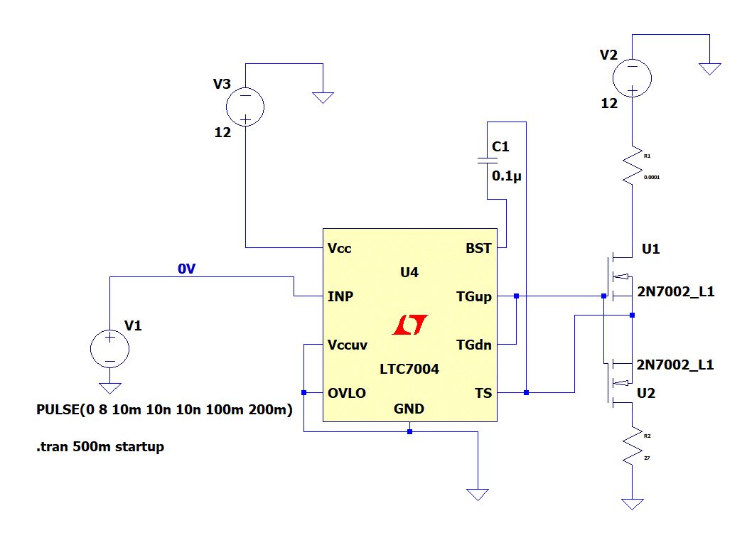 Hallo, Soll U2 (Mosfet) die Last sein ? Klemm das mal so an wie es das Datenblatt vorschreibt und schmeiß den zweiten Mosfet raus. https://www.analog.com/en/products/ltc7004.html#product-overview Gruß