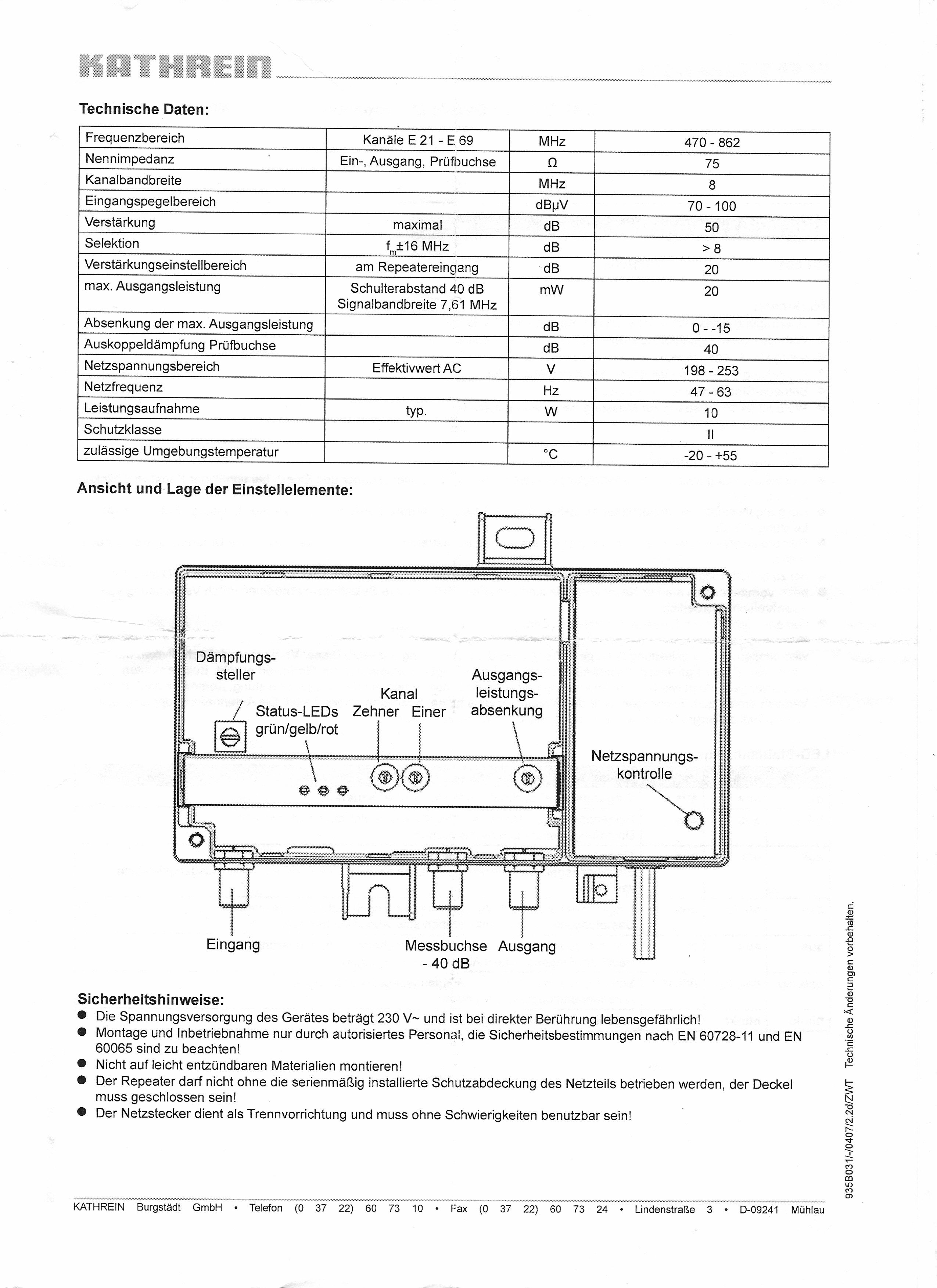 Wolfgang N. schrieb: > Oskar K. schrieb: >> Kathrein Mod.MR801 > > @Oskar > > Besten Dank für den Hinweis. Leider konnte ich kaum etwas im Netz über > Kathrein MR801 finden und mir sagt diese Bezeichnung gar nichts. > Gibt es irgendwo ein Datenblatt? > Welches Eingangssignal erwartet ein MR801? > > Danke > > Wolfgang Werde dir morgen das Datenblatt übermitteln...