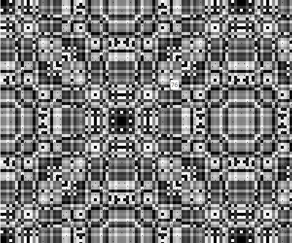 ... x5 macht sofort viel Chaos. Keinen guten Modulowert gefunden. Aber x6 geht wieder. Kai D. schrieb: > Sieht sich an, wie Orientteppiche! Irgendwie ja. Mir fällt gerade ein, dass diese Teppiche von früher her aus Persien stammen- und dort schon vor Jahrhunderten gute Mathematiker gewesen sein sollen. Eventuell gibt es da ja einen Zusammenhang.