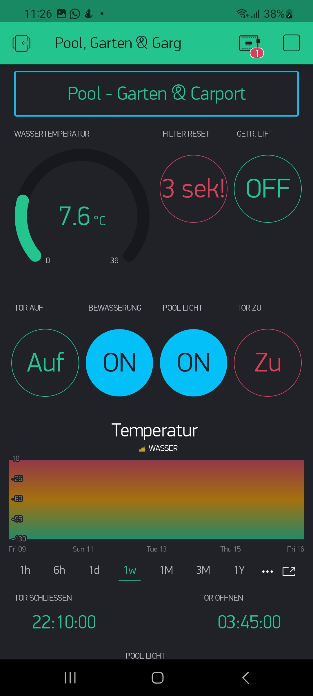 Smarthome ohne es selber zu kontrollieren ist schon lustig. Dann noch die Port weiterleitungen .... NoGo. https://www.shodan.io/search?query=domoticz 3. Link ohne Password in der Heimsteuerung. Deine Bewässerung ist noch "improvable" du willst ja auch nicht den Boden zu 100% mit Wasser sättigen. Aber Vernünftige zuverlässige und langlebige Bodenfeuchte Sensoren gibts nicht bei Ali. Aber ne billige Regenerkennung sollte doch kein Problem sein. Und Meteo Daten abfragen ist ja auch Möglich.