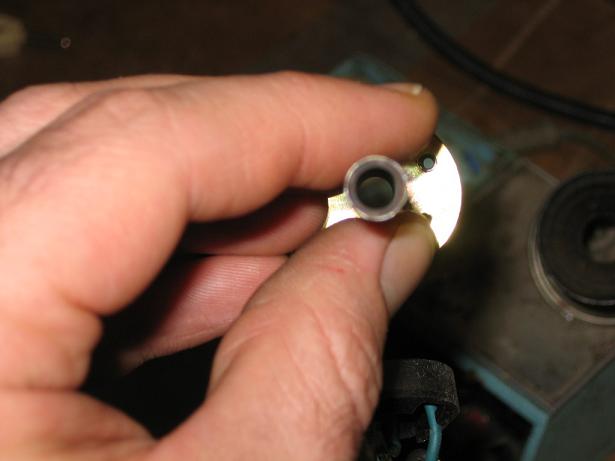 Hier noch ein Bild vom "Röhrchen" in dem die Lötspitze sitzt. Das Röhrchen ist hohl. Hab noch andere Lötspitzen gefunden. Da ist ein Teil, was für mich wie ein Folienkondensator aussieht, parallel geschaltet. Ist das der Thermoschalter??