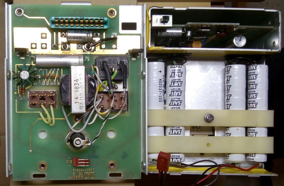 vielen Dank für die diversen Anmerkungen. Da das Gerät bislang einwandfrei - bis auf die Akkus- funktioniert hatte, hatte ich keinen Anlaß gesehen es zu öffnen oder die Schaltpläne zu studieren. Nun habe ich beides getan und festgestellt, dass von einem Totalschaden keine Rede sein kann. Alles ist innen blitzblank, fast wie neu (siehe Foto). Die Akkus habe ich sicherheitshalber ausgebaut und durch Zenerdioden ersetzt. Das Gerät hat meine Operation sehr gut überstanden und funktioniert bestens. Also, wer es haben will, melde sich bitte. Kutte