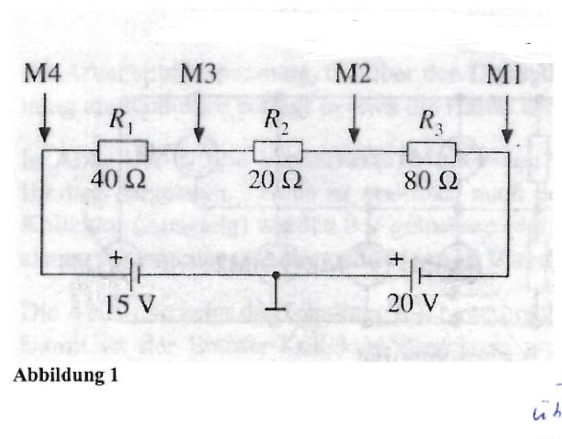 Ich weiß ja nicht! Aber das ist ein einfacher Stromkreis. Und die Meute hier rennt wie ein aufgeschäuchter Hühnerhaufe. Natürlich damit die Schöler ihre grauen Zellen in Bewegung setzen. Was ist daran unklar? Was ist an den Bezeichnungen der Spannungsquellen unklar? Ja, heute würde man da Greta-gerecht KOhm einsetzen.