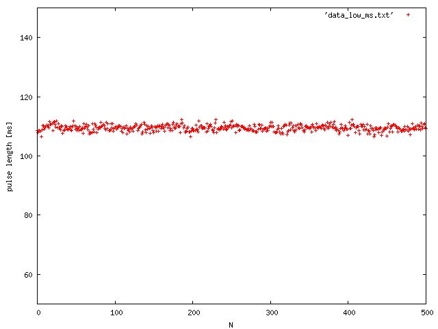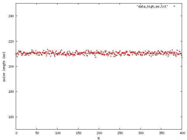 Entweder macht den Modul die Pulse etwas länger oder in Frankfurt werden die Pulse schon verlängert. Kannst dich ja mal dort beschweren (oder in Braunschweig, keine Ahnung wer da zuständig ist). Aber ist das nicht in Wirklichkeit wurscht? 150 ms nach Pulsbeginn schaust du nach welcher Pegel anliegt und hast die Information die du haben willst.
