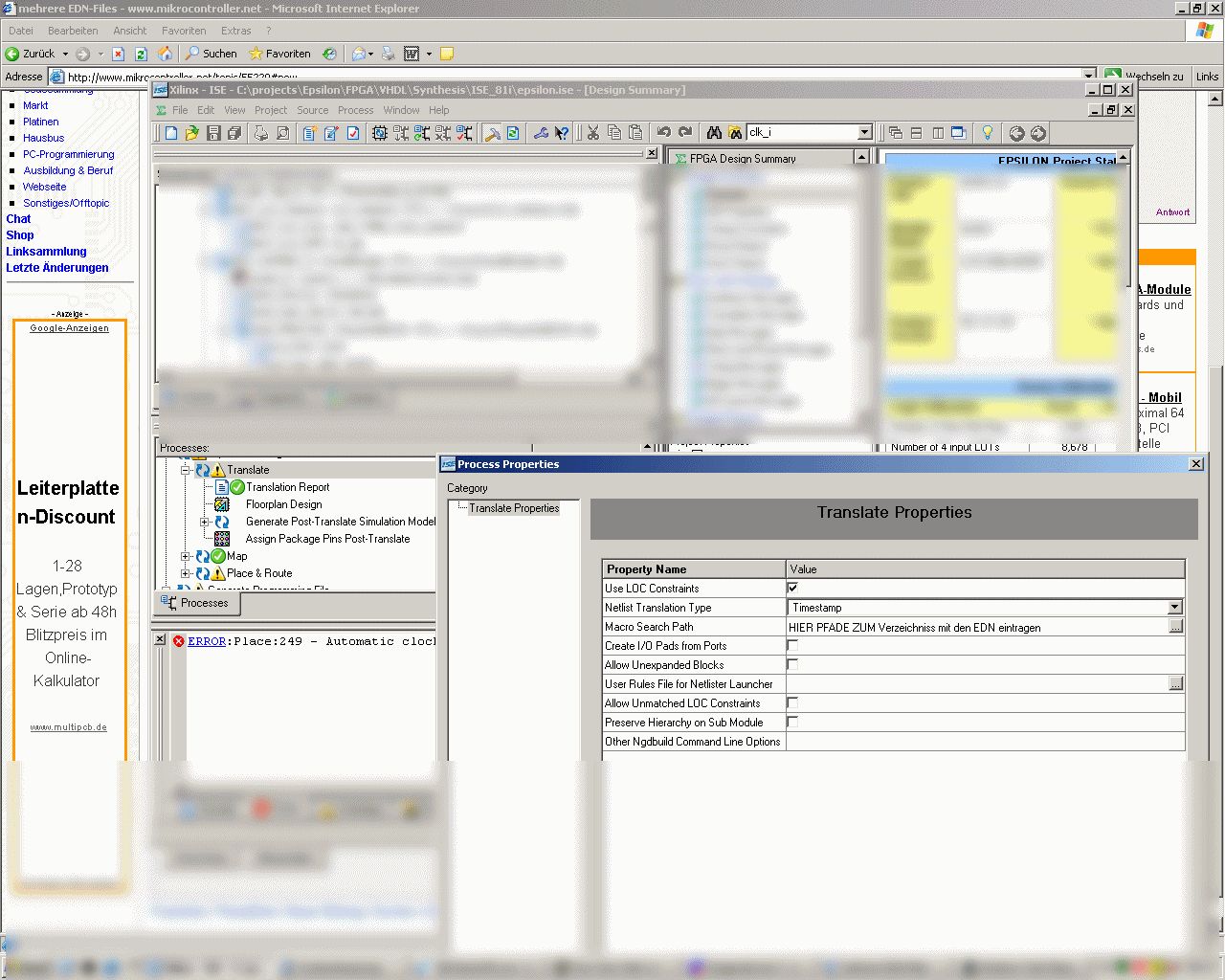 Moin'le gaststatus: ich looge mich kaum unter meinen Forumsaccount ein, unter den für das wiki schon (aber der gilt seltsamerweise nichts fürs Forum? Und ich hab nicht alle Passwörter im Kopf. Auch hat es wohl eine Änderung in der Forumssoftware gegeben, vor ca 4 Wochen wäre ich kein Gast. Max. Frequenz: Die maximale frequenz wird nirgends angezeigt. Zumindest nicht bei FPGA's (vielleicht bei CPLD's). BeiM "FPGA-Compilieren" gibt man eine Frequenz vor und nach dem Place und Route sagen dir die Tools, ob der FPGA diese Frequenz schafft und wie gut (wieviel Luft ist). Gibst du eine andere (höhere) Frequenz an, wird ein neuer FPGA gebacken, der deutlich über die Angaben des ersten liegen kann. Diese Info über die erzielte Taktung steht im Place und Route report, die ISE erzeugt ein File namens *.par, da stehts auch drin. Wie man sich in der ISE hinklickt, zeigt der screenshot.