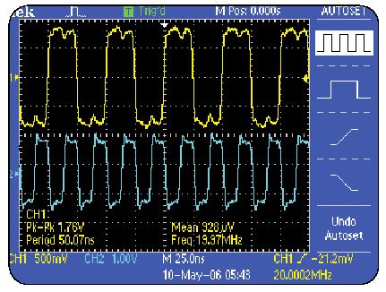 Hallo! Ich frage mich ob man mit einem Tektronix-Oszilloskop aus der TDS2000B Reihe wirklich "glücklich" wird. Angehängt habe ich ein Teil eines Bildes aus dem Prospekt von diesem Gerät (siehe unten). Wahrscheinlich handelt es sich um ein periodisches Signal. Durch die Digitalisierung sieht jedoch jede Periode anders aus. Mit einem Hameg 1508 gäbe es im Analogbetrieb wohl eine bessere Darstellung. Dann wird angegeben, dass das TEK über 10 MHz ein Signal über mindestens 3 Skalenteilen für eine stabile Triggerung benötigt, das Hameg nur ein halbes. Weiterhin hat das Hameg beim Digitalbetrieb einen Speicher für 1 Million Samples pro Kanal und das TEK nur 2500. Beim TEK finde ich gut, dass es kompakter ist, ein Farbdisplay hat (allerdings mit geringer Auflösung), bis zu 4 echte Analogeingänge und gleichzeitig auf allen Kanälen bis zu 2 GS/s kann und das Hameg nur 0,5GS/s. Nicht zu verachten sind auch die 10 Jahre Garantie für das TEK-Gerät. Vielen Dank für ein paar Meinungen und Gruss Michel PS Da es mit dem Anhang nicht funktioniert, hier der Link zum Prospekt: http://www.tek.com/site/ps/3G-19558/pdfs/3GW_19558.pdf Ich meine das Bild oben links auf Seite 2.