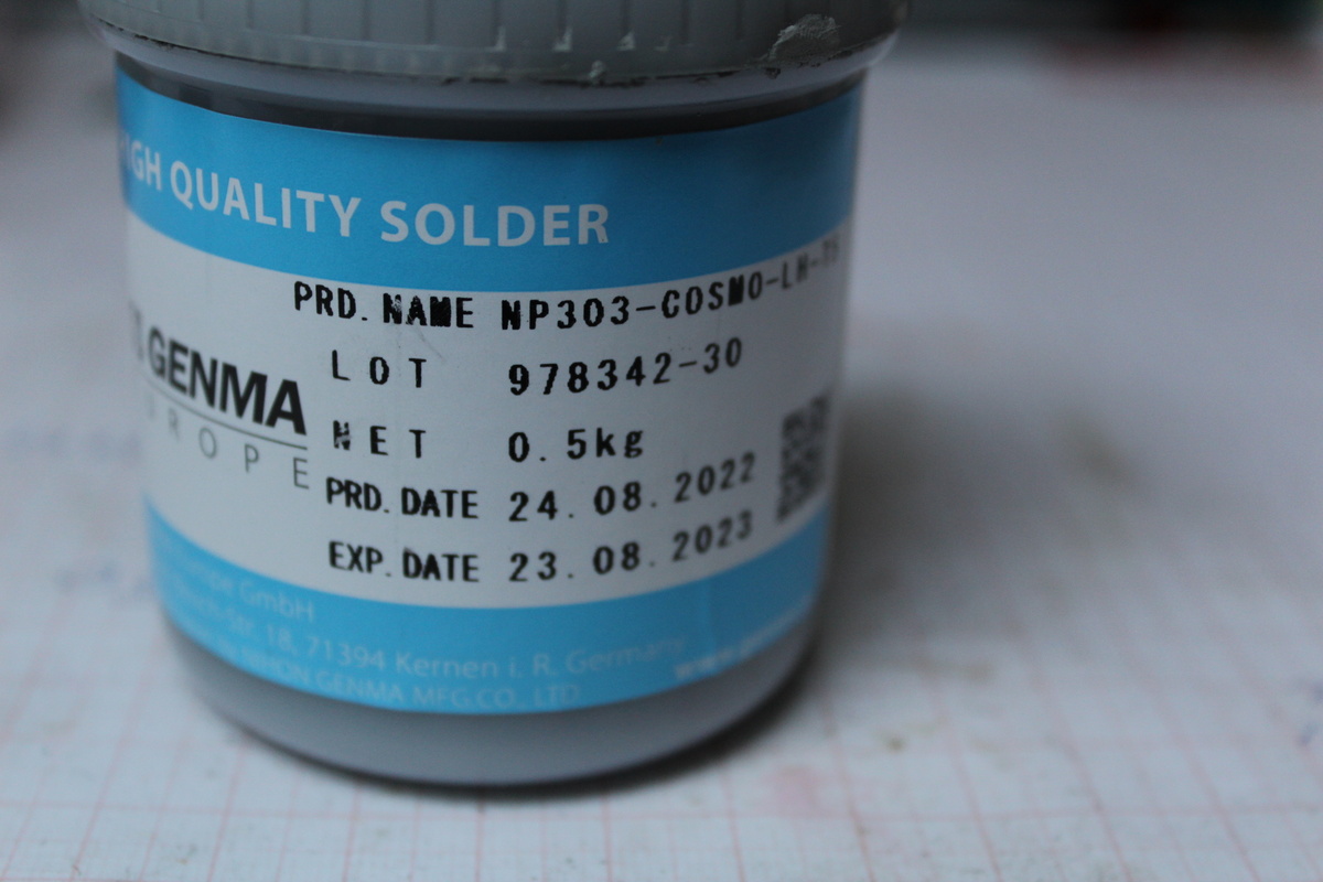 Die Genma ist eine ausgezeichnete Allzweck-Lotpaste, die übrigens auch eine längere Lagerung bei Zimmertemperatur normalerweise verzeiht. Muss halt vor Verwendung gut aufgerührt werden, dann ist die schon ein Jahr verwendbar. Das sollte man aber auch machen wenn sie gekühlt war.