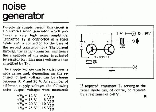 Einfachster Rauschgenerator wäre ein rückgekoppeltes Schieberegister mit einigen XORs und einem Leistungsverstärker an einem Laustsprecher.