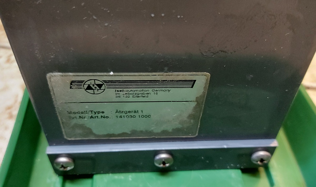 Hallo, hier steht zum Verkauf ein Konvolut zu erstellen von eigenen Platinen. Die Sachen waren natürlich im Gebrauch - wie die Bilder zeigen - aber funktionieren alle einwandfrei. Alles getestet. Kuvette dicht. Heizung heizt. etc. * ProMa Belichtungsgerät mit 4 Röhren + Timer * Isel Ätzgerät 1 * Jeager Heizstab (Euro-Stecker muss neu) * Membranpumpe * 2ter Platinenrahmen * 2x Schalen * Handpumpe zum Absaugen von Ätzmaterial etc... * Sprudelschlauch etc. Hinweis zum Heizstab!! Der Heizstab ist Ok nur der Stecker muss erneuert werden. Verrostet. Siehe Bild. Für Leute hier wohl kein Thema! Alles für 60€ + 12€ Versand (Paypal) Bei Interesse bitte PM mit Artikelangabe. Danke! MFG Roger