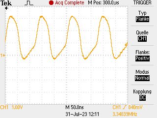 von Uli N. schrieb: >Ich mag mir nicht so recht vorstellen, dass der Oszillator nur dann >nicht sauber arbeitet, wenn ich mit meinem Oscilloscope-Tastkopf >zusätzliche ca. 10pF in die Oscillator-Schaltung einbringe!? Einer von den beiden Anschlüssen OSC1 OSC2 ist Ausgang und einer Eingang. Du mußt am Ausgang Messen. Und Tastkopf mit Vorteiler 1:10, so daß du 10 MOhm hast.