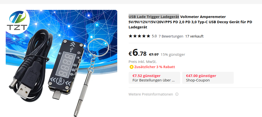 Wundert mich sowieso warum keiner der Moderatoren bisher den Fred gesperrt hat. Schliesslich wollte ich damit auf die umweltschonende Wirkung der Verbreitung des USB-C PD/PPS Protokolls hinweisen. Ein einziges Netzteil fuer alle PD/PPS kompatiblen Geraete: Handy, Laptops, Bauernbaenke... Ein leichtes Daypack im Ryan-Air Flieger. Ein programmierbares Netzteil aus einem pofeligen Ladegeraet. https://de.aliexpress.com/item/1005001770676042.html?spm=a2g0o.order_list.order_list_main.5.493d5c5fJ6VGQi&gatewayAdapt=glo2deu Verstehen diese Vorteile nur die Auslaender, oder was ist hier kaputt im Forum oder im Kopf der Leute?