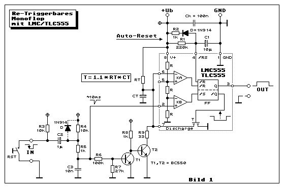 Monofloppschaltungen: https://www.mikrocontroller.net/articles/Monoflop https://www.elektronik-kompendium.de/sites/slt/0310121.htm https://www.rahner-edu.de/grundlagen/signale-richtig-verstehen/digitaltechnik-teil-4a/ http://www.mschrod.de/elektronetz/Elektronik/Grundlagen/Monoflop/Monoflop.html