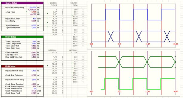Die maximale Toleranz der zeitlichen Varianz der Ausgänge gegenüber dem Takt. Diese kommen aus den Setup- und Holdtime-Angaben im Datenblatt. Faktisch geht es im Wesentlichen darum, ob die Daten zur pos. oder neg. Flanke des Taktes anstehen müssen und wie lange um diesen Bereich herum die Daten stabil sein müssen. Gfs muss das für beide Flanken eingestellt werden, wenn du DDR taktest.