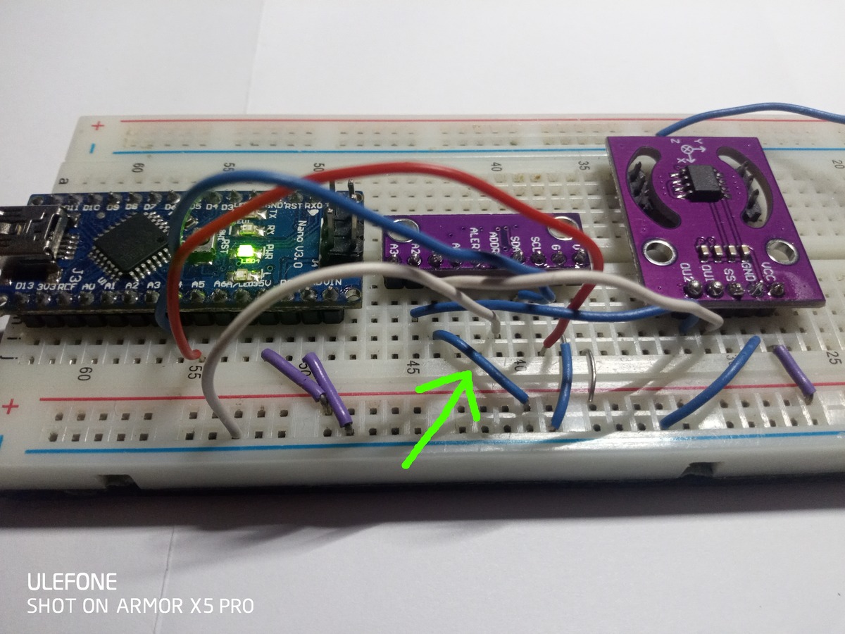 die Kommunikation über I2C). Beigefügt habe ich ein Bild vom Breadboard.
