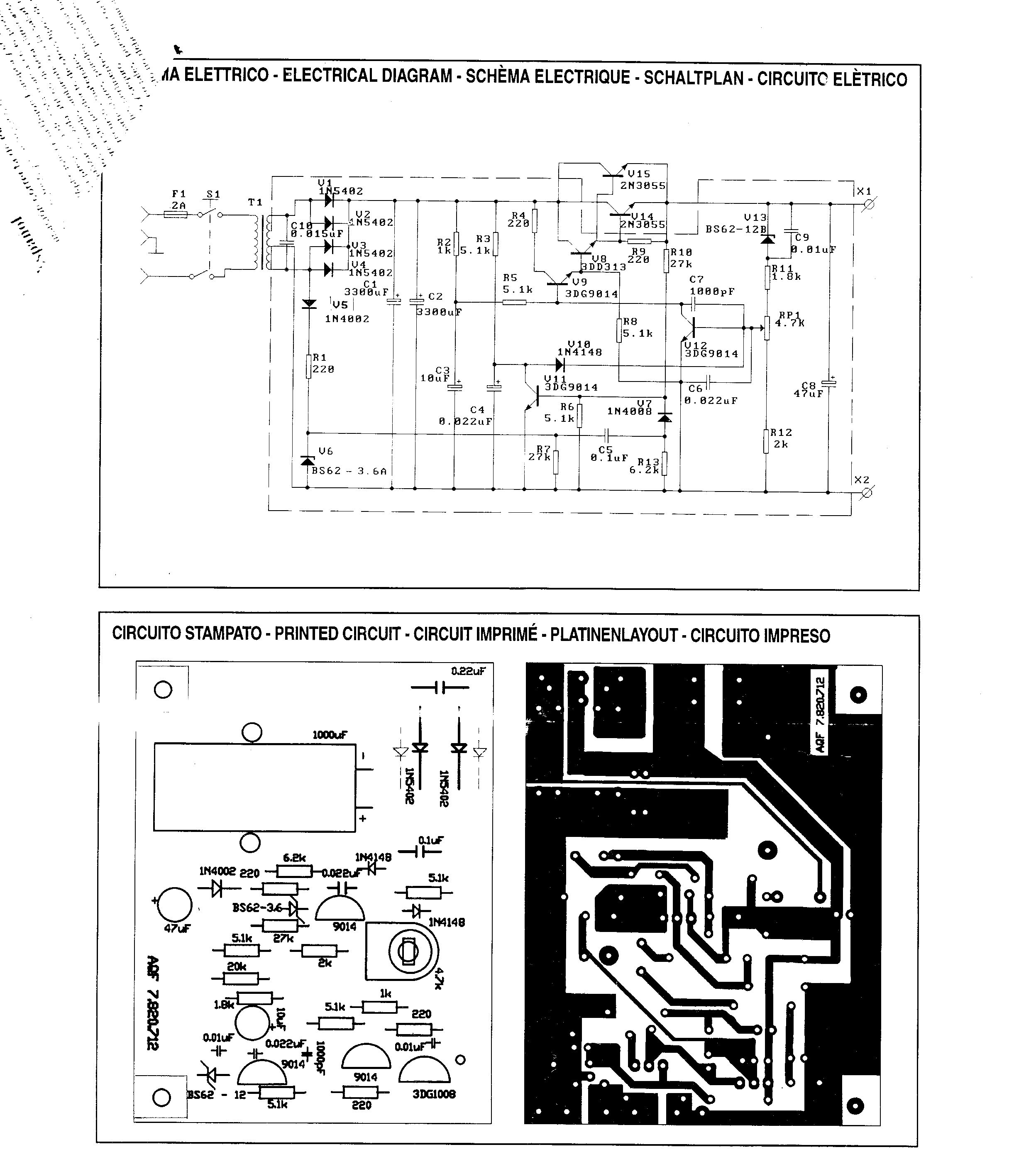 V12 wird an seiner Basis im AP vorgespannt über R3 + V10, diese U wird aber von V11 balanciert u. das abhängig auch von der U-Ausgang, Das ist eine sich gegenseitig beeinflussende Regelung, nur bekommt der V11 noch dazu 100 Hz Impulse direkt von der Sek.Seite U~ über V5 + R1 C5 + V7 , kein Wunder dass da die Leistungs-Tr. sterben , u. die beiden C´s > C7 u.d C6 sollen das wohl passiv kompensieren? Ein total unsinniges SchaltungsKonzept.
