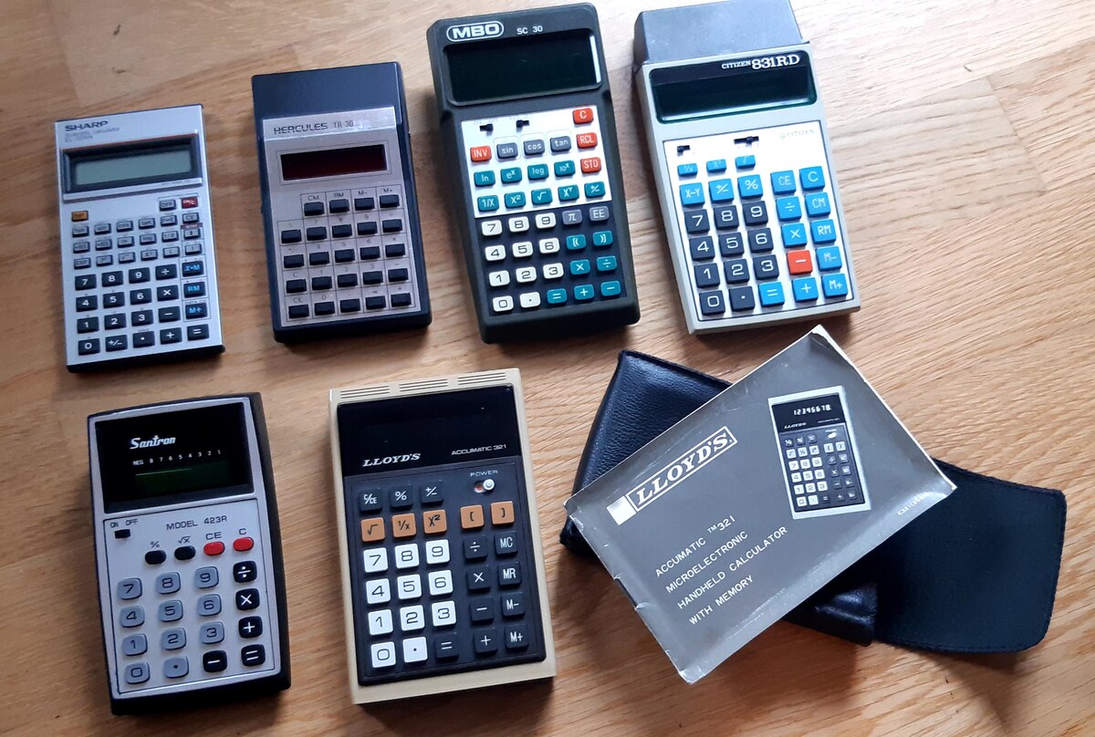 > Mein erster Taschenrechner hatte 4 Grundrechenarten und LED Anzeige.