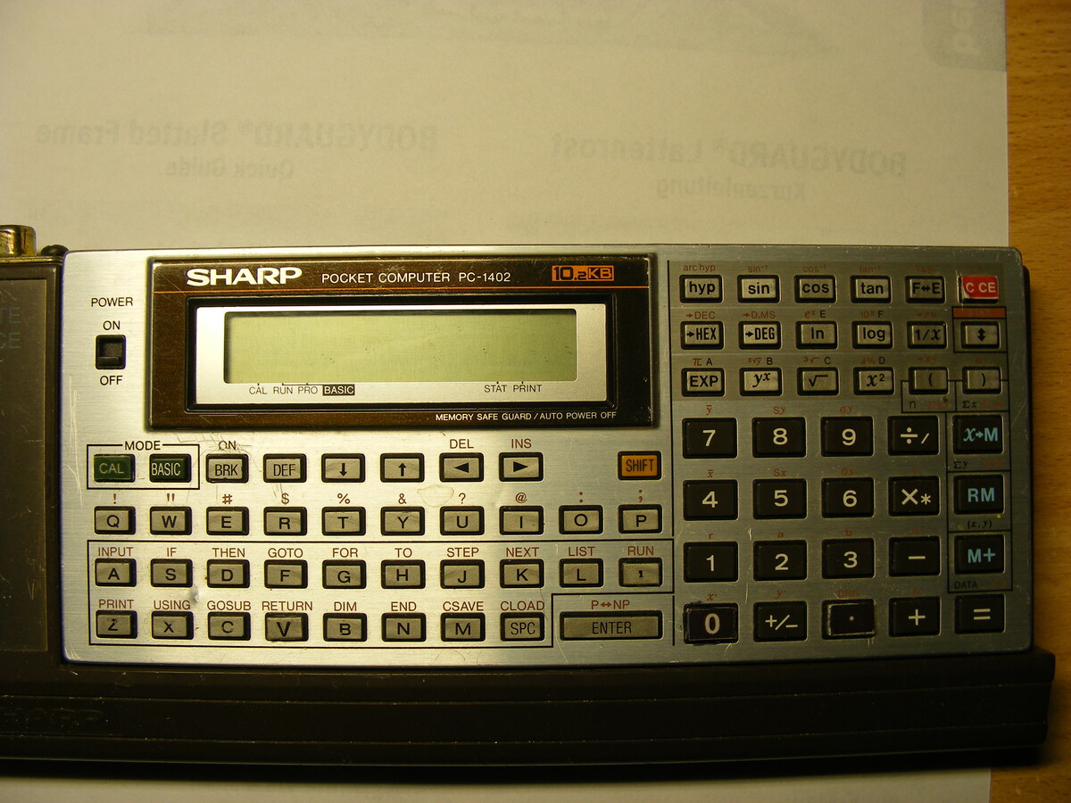 Schade, den Sharp hatte ich lange Jahre, das Ding war sogar programmierbar und vergass das Programm auch nicht, wenn man den ausgeschaltet hat. Das konnte der vielfach teurere TI 58 nicht. Gekauft hatte ich den winmre ca 83 oder 84.