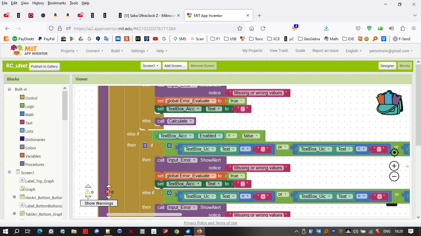 Herbert B. schrieb: > Womit hast du die App entwickelt? Kostenlos: "Massachusetts Institute of Technology" https://appinventor.mit.edu/ Die Programmierung erfolgt in Echtzeit.Man entwickelt auf dem Lappy und sieht das Ergebnis gleich auf dem Smarty ueber WiFi (ich verwende nur Wifi-ist am einfachsten) Die Programmierung ist einfach.Zuerst im Designer-Mode die GUI erstellen und auf dann auf Block-Mode wechseln und loslegen.Vieles laesst sich schon erahnen wie es funktionieren soll aber in den ersten 2 Stunden wird man mit Sicherheit etwas Muell produzieren.Blockprogrammierung ist zwar einfach aber auch etwas unuebersichtlich auf Dauer. Hinweis: Mache werden jetzt wieder die Nase ruempfen und mit Bullshit und so daherkommen,weil mit Hilfe von grafischen Bloecken programmiert wird.Ist mir PIEPEGAL.Ich programmier als Hobbyist Pics in C,Assembler und frueher auch Basic Obwohl ich "Picler" bin,mag ich auch die (verhassten)Arduinos - ich bin grundsaetzlich offen fuer alles wenn es mich zum Ziel bringt.
