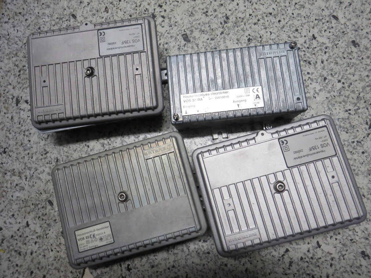Hallo Leute ! Abzugeben sind 4 gebrauchte Gehäuse. Diese enthielten ursprünglich Kabelfernsehkrempel. Die Gehäuse haben div. Bohrungen für PG- Verschraubungen und HF-Stecker. Preis VB5€ + 8€ Versand für alle