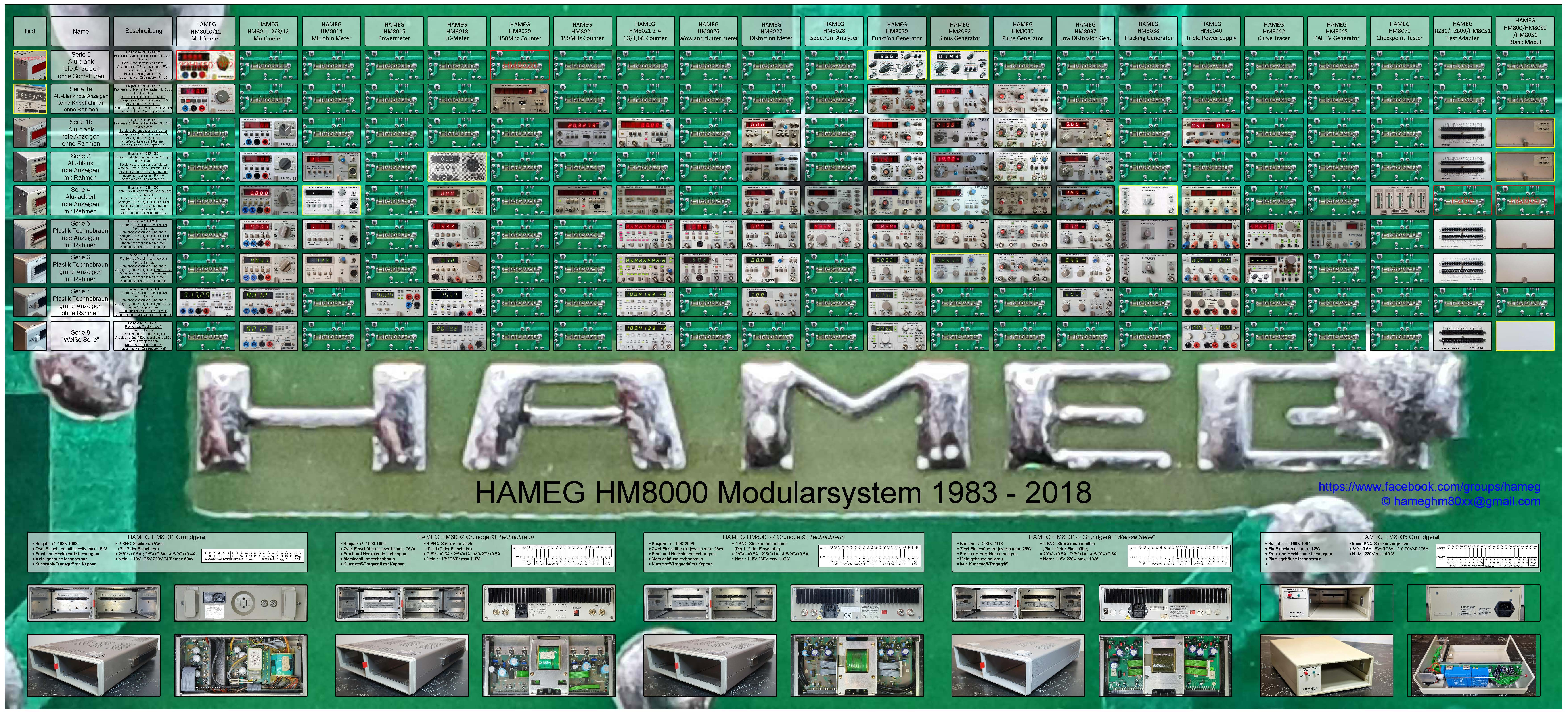 HAMEG HM8000-Poster Download Ich habe ein Poster von allen mir bekannten Hameg Hm8000er-Geräten erstellt und benötige eure Hilfe. Ich bin auf der Suche nach weiteren Geräten die auf dem Poster noch nicht drauf sind oder wo die Fotos nicht gut sind. Die original PDF-Datei ist 15mb und somit zu groß um es hier anzuzeigen. In meiner HAMEG-Facebook-Gruppe kann man es in voller Qualität herunterladen. Einfach nach "HAMEG" unter "Gruppen" suchen. Vieleicht sieht man sich ja da. Hilfe, Infos und Fachsimpeln mit Gleichgesinnten. Grüsse Marc