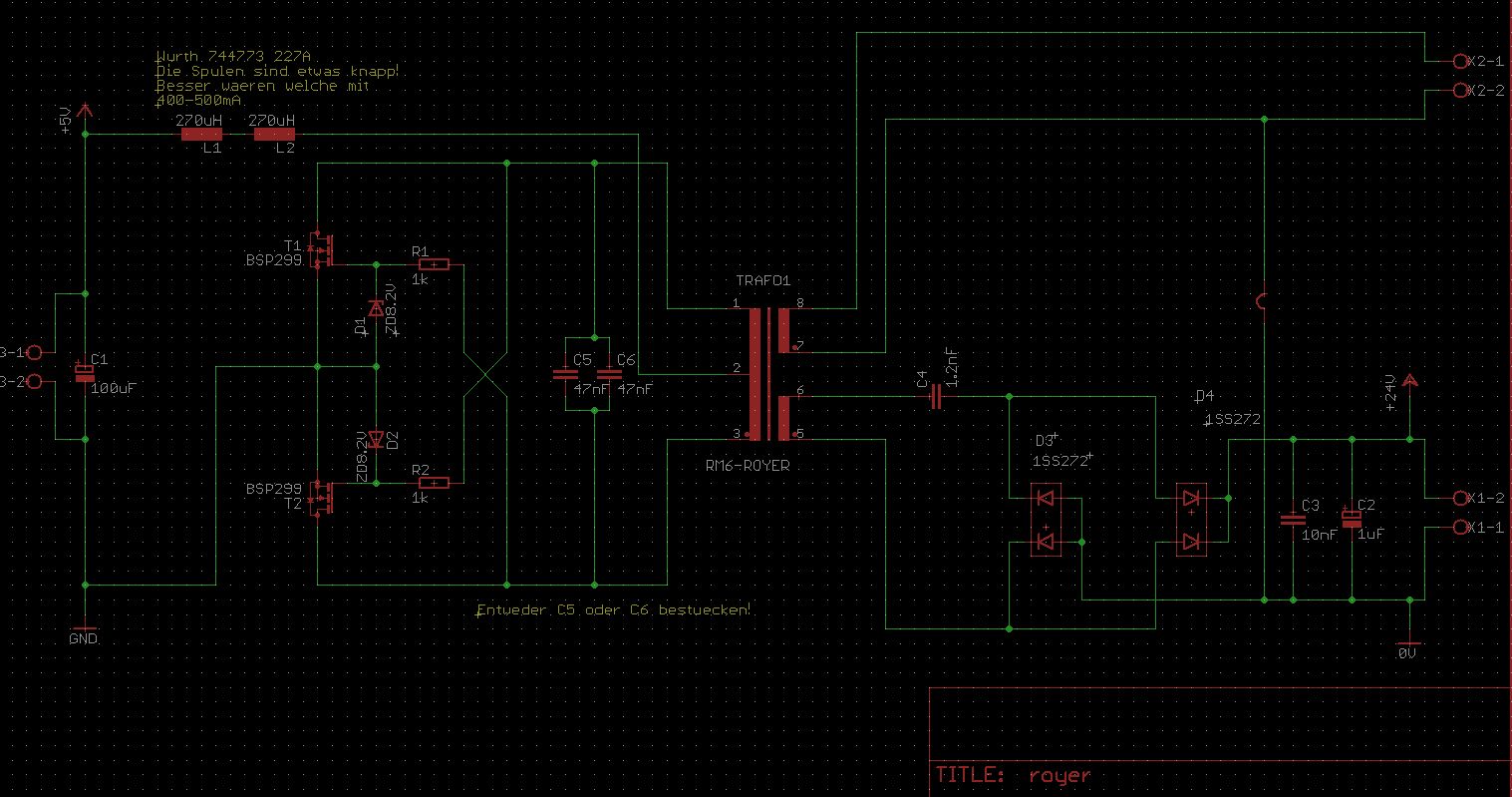 Oft war der Gegentaktwandler als Wandlertopologie genannt worden. Evtl. ist das ja hier aber ein Sinuswandler, oder etwas ganz anderes? https://www.joretronik.de/Web_NT_Buch/Kap11/Kapitel11.html#11.1 Hier mal mein Schaltbild inkl. Trafo. 1= 2x15W Prim. 2= 1x20W Feedback 3= 1x180W Anode/Grid 4= 2x5W Heizung Auch trotz des unausgefeilten Schaltbilds müsste man doch erkennen können, was das für eine Wandlerart ist, oder?
