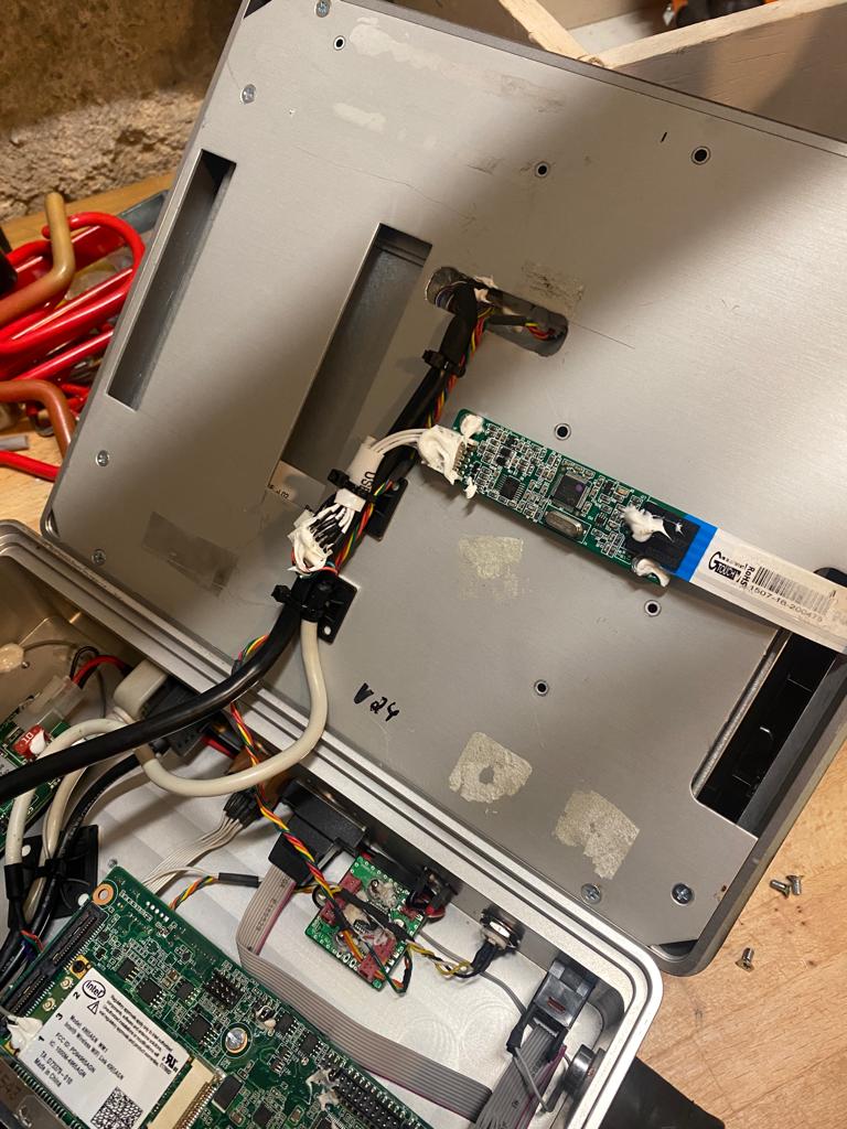 Hallo zusammen, zum basteln - in verschiedenen Zuständen sind diese tollen 10" Kisten :-) - Windows CE - über das untere Poti kann man die Displayhelligkeit justieren - dort ist auch ein Spannungseingang (abgeklemmt für den Test, also ohne Stecker) und ein Taster zum booten - auf der Gegenüberliegenden Seite sind 2 USB Ports sowie wie die WLAN Antenne als Buchse herausgeführt. Oft sind die WLAN Antennenbuchsen defekt, Antennen sind keine dabei - das Gehäuse ist robust und sehr (!) schwer - wie man auf den Bildern erkennen kann auf 24 VDC umgebaut mittels der linken Platine (10A abgesichert) Preisvorstellung: 1 Stück = 20 Euro + Versand 3 Stück = 45 Euro + Versand