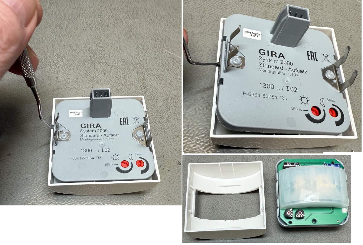 Hallo ich habe bei mir ca. seit 2013 4 Stück Gira Komfort Bewegungsmelder verbaut. Jeweils 2 Bewegungsmelder zusammengeschlossen. Haupt und Nebenstelle. (Einen Kreis habe ich mit Trafo und 24 Volt LED Spots und den zweiten Kreis habe ich mit 3 Lampen jeweils eine E27 LED Birne .) Die ersten 5-6 Jahre hatte ich keine Probleme. Aber danach hat fast jedes Jahr einer zum spinnen angefangen. Zuerst ist das Licht immer wieder ein und aus gegangen alle paar Stunden ein paar mal . Die Abstände haben sich dann minimiert und irgendwann ist es dann gar nicht mehr ausgegangen . An den Linsen war kein Dreck oder dergleichen feststellbar. Habe die Linsen dann gegen eine andere Gegengetauscht dann hat er wieder funktioniert Dann komplett neuen BWM (Relais + Platine System 3000 ) verbaut da es das System 2000 nicht mehr gibt. Dann war wieder alles gut. Ein bis 2 Jahre später dann der nächste. Ursache wieder die Linse. Wieder durch System 3000 getauscht. Seit gestern spinnt wieder einer. Der läst sich ebenfalls nicht mal mehr ausschalten . (habe Versuchsweise eine andere Linse eingebaut mit der funktioniert’s . Also wieder die Linse. Da ja immer der Aufsatz (Linse) defekt ist kann es ja nicht an der LED Beleuchtung liegen oder? Was kann da die Ursache sein? Anbei ein paar Fotos vom Aufbau des BWM