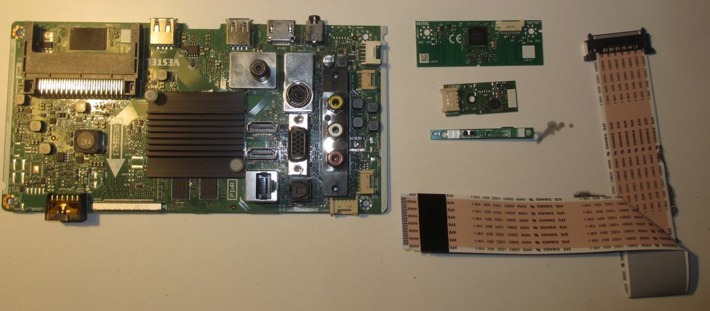 BT, WLAN, TCon Kabel, on/off-IR, Mainboard selbst (ton + tuner defekt). 5€ für P&VP. Klaus.