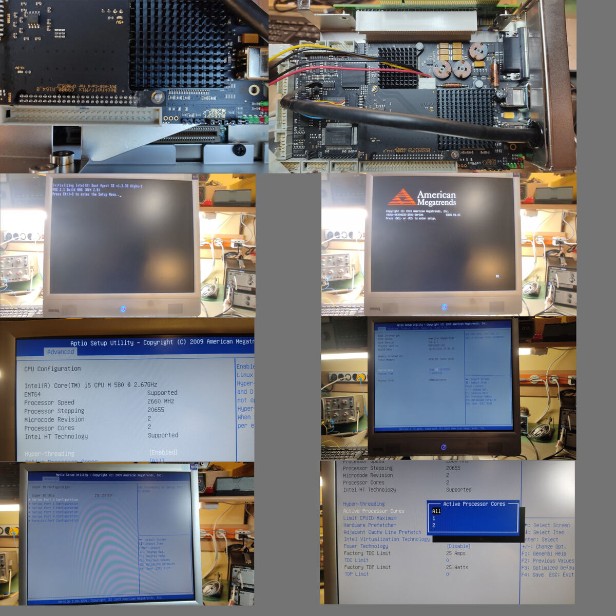 Laut Typschild: NISE3500P2 Laut BIOS ist es ein NISE-3500 Series (N350-069) Zum System: Mainboard: ExOne .... BIOS: APTIO bzz. AMI von "2012" für "N350-069" x64 Speicher: 4 GB - erweiterbar - ein Steckplatzu frei Prozessor: INTEL i5 CMP M580 @ 2.67GHz (vermutlich Mobile-CPU "Laptop" // 2 KErne * 5 COM-Port + 1x Parallel * 1 PCI Steckplatz * Graphik in CPU integriert => VGA * Beckhoff Terminal Interface - CP9035-2 mit DVI-Addcard C9900_A164_0 Zur Stromversorgung: Ein Stück Kabel mit passenden Stecker ist dabei DC 9V-30V gesiebte Gleichspannung Strom ist am Boden am Typschild mit 13,3A - 4A angegeben. Ausschnitt: +-----------------------------------------------+ + Input Rating 9V === - 30V === , 13.4A - 4A | + Power Adapter Input Rating: 100V-240V~2A | + .... | +-----------------------------------------------+ - Das System wurde aus einem Schaltschrank ausgebaut der verschottet wurde - Das System hat bis zum Abbau des Schaltschrankes funktioniert - Das System lag jetzt ein Jahr bei mir im Keller - Ich konnte das zuvor installierte Betriebssystem bis zum Anmeldebildschirm booten - Ich konnte ein Linux booten und die Festplatte nach US-Standard löschen - Ich habe zum Testen Ubuntu 16.x installiert BEI FRAGEN EINFACH MELDEN Das ganze ohne Zubehör - ohne Betriebssystem - ohne Garantie Eine eine einfach Boardbeschreibung aus einem Screenshot wird mitgeliefert PREIS VB: 689€ Abholung: In der nähe (5km) von 86316 Friedberg / Bayern Versand nach Absprache - Teil wiegt doch 5.5kg => DHL Paket bis 10kg = 11€