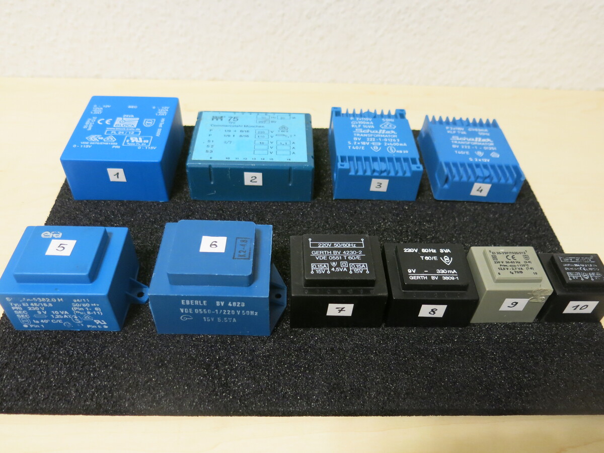 Hallo, hast Nachricht. Wegen der 5 Trafos 1. 24VA, I: 2 x 115V, II: 2 x 12V x 1A 2. 20VA, I: 2 x 110V, II: 18V x 1,1A 3. 14VA, I: 2 x 110V, II: 2 x 18V x 0,4A 4. 7VA, I: 2 x 110V, II: 2 x 12V x 0,3A 5. 10VA, I: 230V, II: 9V x 1,1A Gruß bastler2022