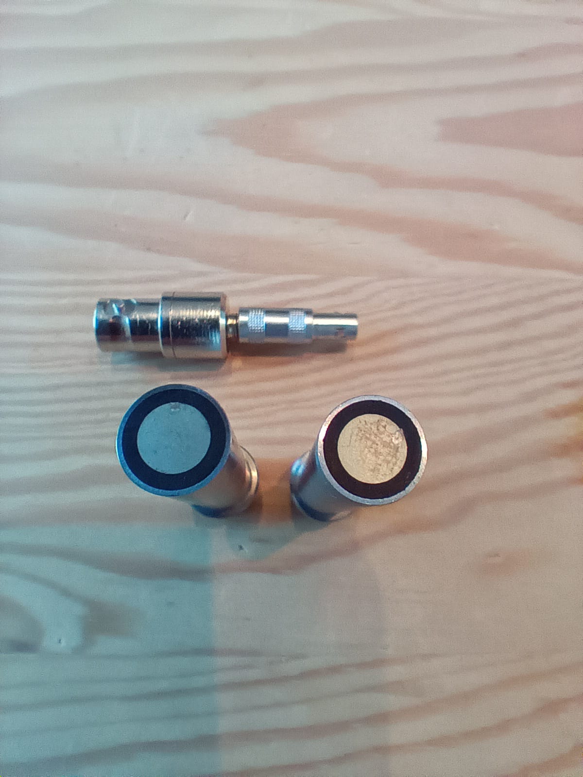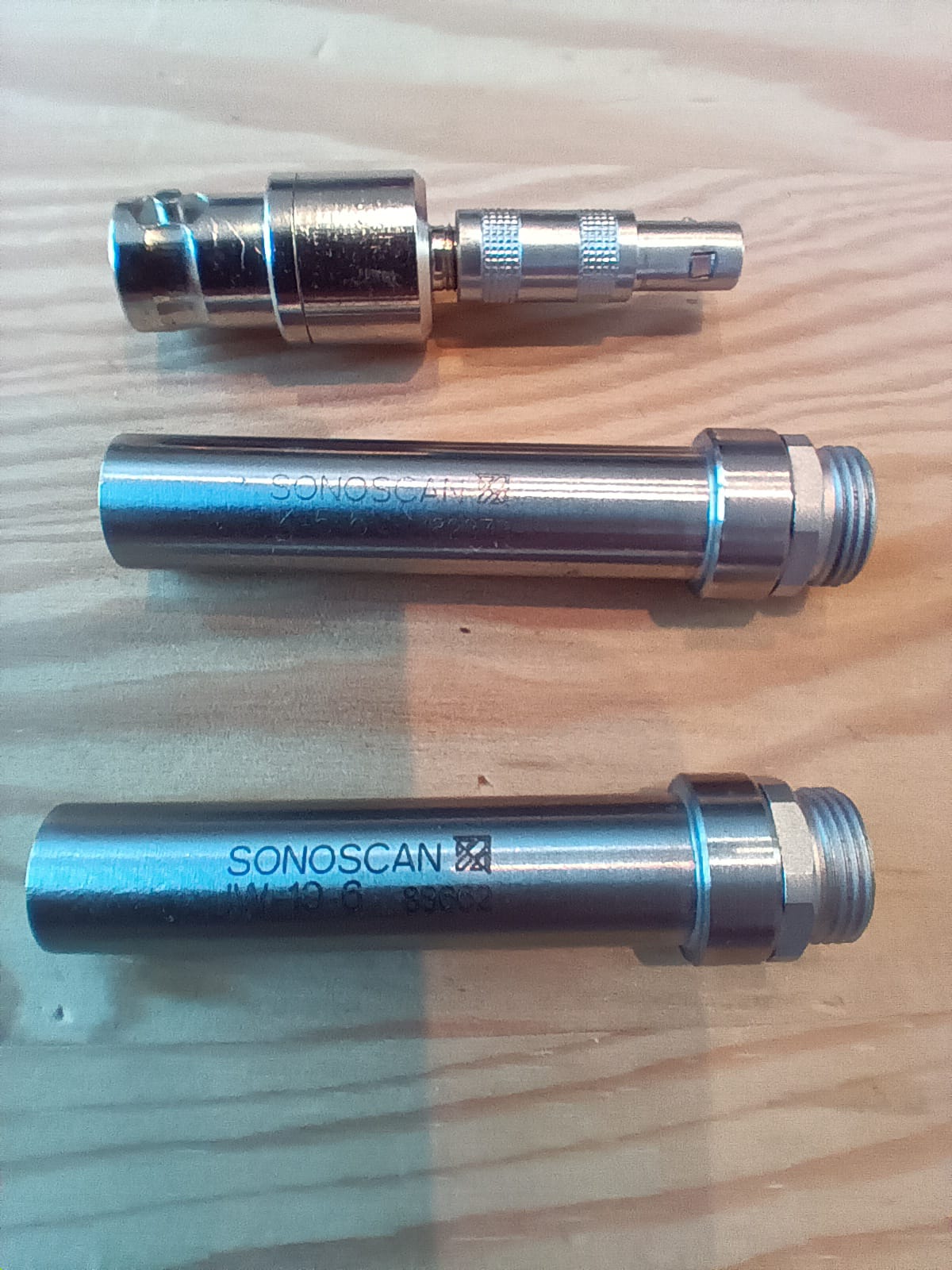 Hallo, ich wuerde gerne diese Transducer abgeben, sind wenig benutzt worden und liegen nun schon eine Weile rum. Ich denke so an 110 Euro fuer alle zusammen. Versandkosten uebernehme ich. Wenn Ihr nur einzeln nehmen wollt, fragt einfach und schlagt einen Preis vor. Panametrics-NDT Olympus V206 5MHz .5" Mana E5006-SM 5MHz/6mm Sonoscan IW-10-6 Sonoscan IJ-5-6 BNC zu Lemo Adapter fuer die Sonoscans. Einzelheiten in den Photos.