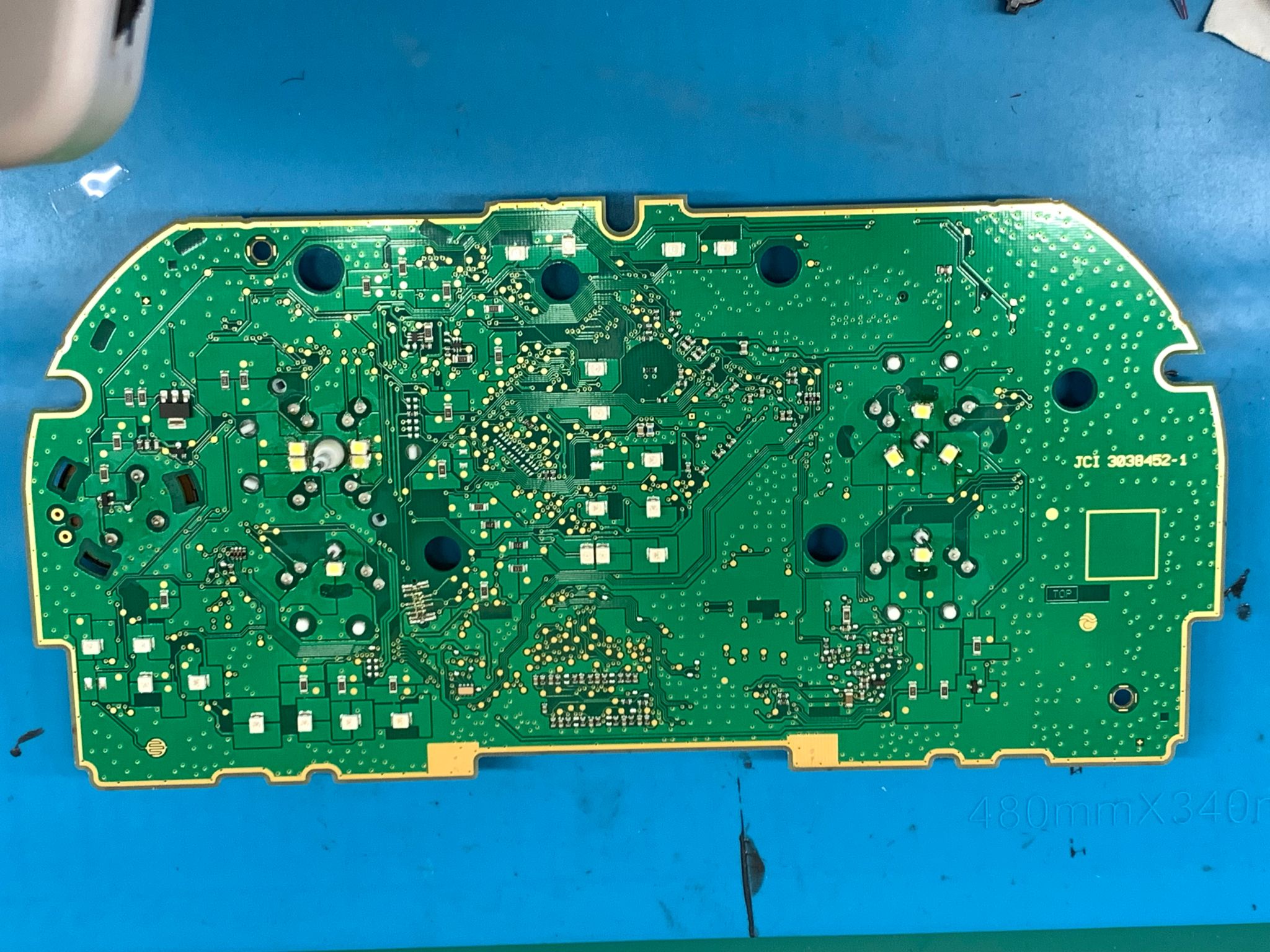 Hallo, ich tausche regelmäßig die orangefarbenen LEDs gegen weiße aus, und bisher lief alles reibungslos. Allerdings gab es kürzlich einen Vorfall, als mein 5-jähriger Sohn versuchte, mir zu helfen und die Spannungen überprüfen wollte :-D Es scheint, dass er an der rot markierten Stelle, wo der Tacho angeschlossen wird, versehentlich Plus und Minus mit einer eingestellten Spannung von 12V am Labornetzteil kurzgeschlossen hat. Seitdem funktioniert die gesamte Einheit nicht mehr. Ich habe bereits durch ein Mikroskop geschaut, konnte jedoch keine durchgebrannten SMDs oder andere offensichtliche Schäden feststellen. Ich bin in der Lage, Teile auszutauschen, Chips umzulöten und auch ICs wie z.B. Festplattenerweiterungen an iPhone-Modellen zu reparieren, aber darüber hinaus bin ich nicht sicher, wie ich weiter vorgehen soll. Hätten Sie möglicherweise einige Tipps, welche Teile ich überprüfen könnte, eine Vermutung, was das Problem sein könnte, und wie ich diese kleinen Teile am besten überprüfen kann? Ich wäre für jegliche Hilfe dankbar. So ein gebrauchter Tacho kostet nicht die Welt, nur würd ich hier gern mein "Know-How" erweitern. Lg