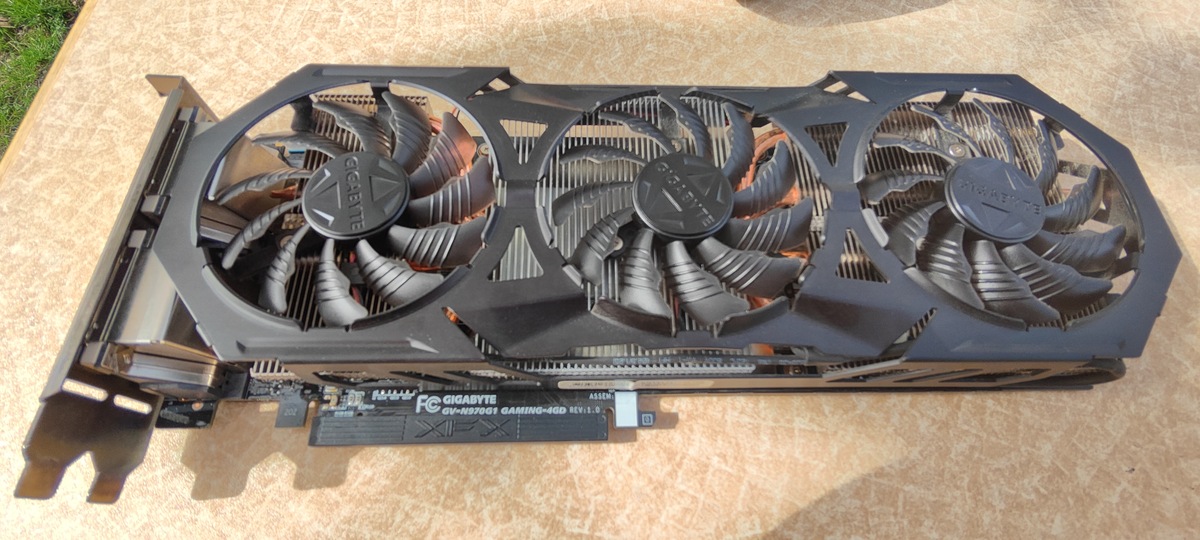 Verkaufe gebrauchte, funktionstüchtige Grafikkarte "Gigabyte GV-N970G1 GAMING-4GD Graphic Card (PCI-e 4GB GDDR5 DP, HDMI, DVI-D, DVI-I, 1x GPU)". Grafik-Coprozessor: NVIDIA GeForce GTX 970 Marke: Gigabyte RAM-Größe der Grafikkarte: 4 GB GPU-Taktfrequenz: 1329 MHz Videoausgabe-Interface: HDMI Hersteller des Grafikprozessors: NVIDIA API-Unterstützung: OpenGL 4.4, DirectX 12 Max Auflösung: 4096 x 2160 Core Clock: 1178 MHz Anzahl der max. unterstützten Bildschirme: 4 Grafik-Engine: NVIDIA GeForce GTX 970 Preislich dachte ich an 50€ inkl. Versicherten Versand.