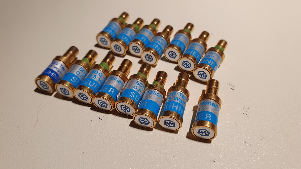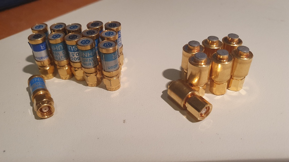 Zum Verkauf stehen ein paar HF-Adapter und -Abschlusswiderstände.