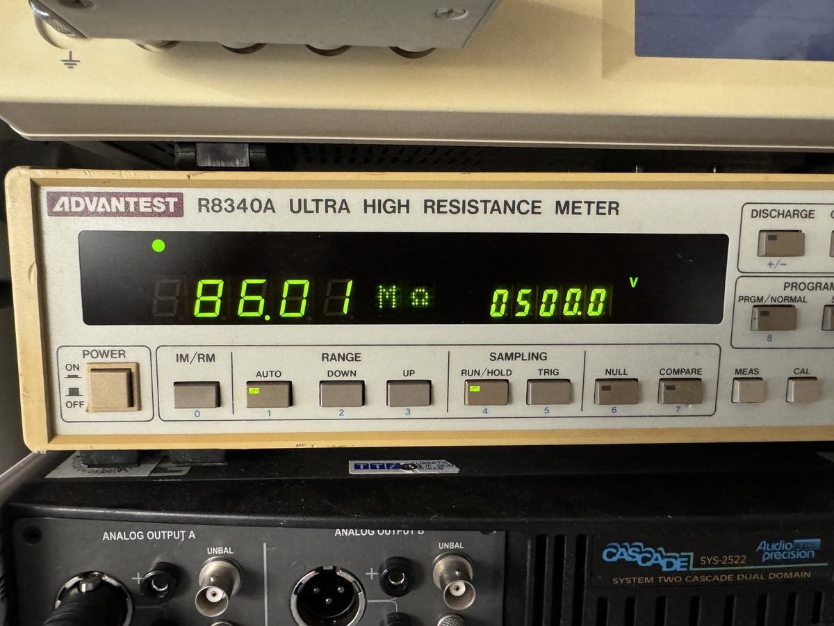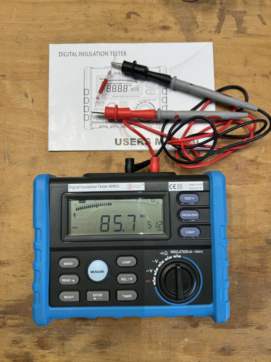 Hallo, ich habe hier noch ein Isolationsmessgerät rumliegen, für welches ich zu viele Alternativen habe. Es kann 50 bis 1000V (in diskreten Schritten) anlegen und bei 1000V bis 10GOhm messen. Es ist baugleich zum Matsch MS5203 (und wahrscheinlich diversen anderen). Das Gerät ist absolut in Ordnung und würde mit Messleitungen und der Anleitung kommen. Ich habe mal einen (sehr toleranzbehafteten) 100MOhm Widerstand mit dem Gerät hier und mit einem 'richtigen' Messgerät als vergleich gemessen. Das Ergebnis ist in den Bildern zu bestaunen. Vorgestellt hatte ich mir 100€, bin aber für Vorschläge offen. Es kann verschickt oder in Ahrensburg abgeholt werden. Mit besten Grüßen Andreas