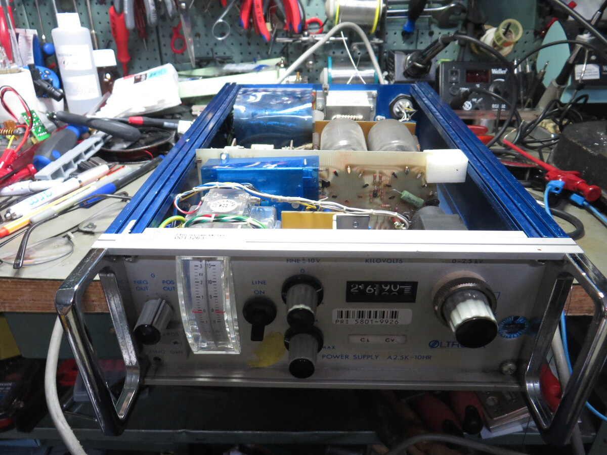 Hallo Leute Abzugeben ist ein Hochspannungsnetzteil 0..2500V 10mA. Bei dem Gerät handelt es sich um ein Röhrengerät. Das Gerät läßt sich einfach von positiver auf negative Ausgangsspannung umrüsten. Das Gerät ist i.O hat aber einige Probleme: 1. Der Deckel (nicht abgebildet) ist leicht verdellt. 2. Der Zusammenhang zwischen Ausgangsspannung und Sollwertpoti ist ab ca. 1000V nicht mehr linear. Für 2500V Ausgangsspannung müssen am Poti 3500V eingestellt werden. 3. Der max. Ausgangsstrom ist nicht 10 sondern 13mA 4. Unterlagen habe ich keine. Preis: VB 150€ + 10€ Versand
