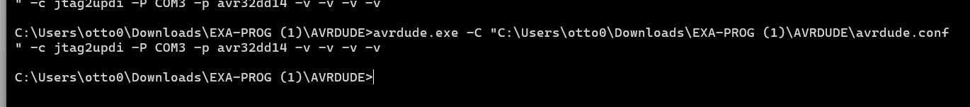 Liebe Community, ich probiere einen AVR32DD14 mit dem Programmer Diamex EXA-PROG und AVRDUDE unter Windows 11 zu programmieren. Der Programmer wird erkannt, leider findet AVRDUDE den Mikrocontroller nicht! Bei meinem Setup erhalte ich die Fehlermeldung aus dem Anhang. Zur Verkabelung: +5 Volt vom EXA-PROG -> pin 1 GND vom EXA-PROG -Y pin 14 UPDI Diamex -> pin 3 Zwei Kondensatoren (100n, 1u) zum Puffern der Spannung (zwischen +5V und GND). Versorgungsspannung liegt richtig an, das habe ich nachgemessen. Die Switches am EXA-PROG sind 1:on,4:on und der Rest aus. Hat jemand von euch Erfahrung mit dem EXA-PROG und den "neueren" AVR und kann mir helfen? Viele Grüße Johannes