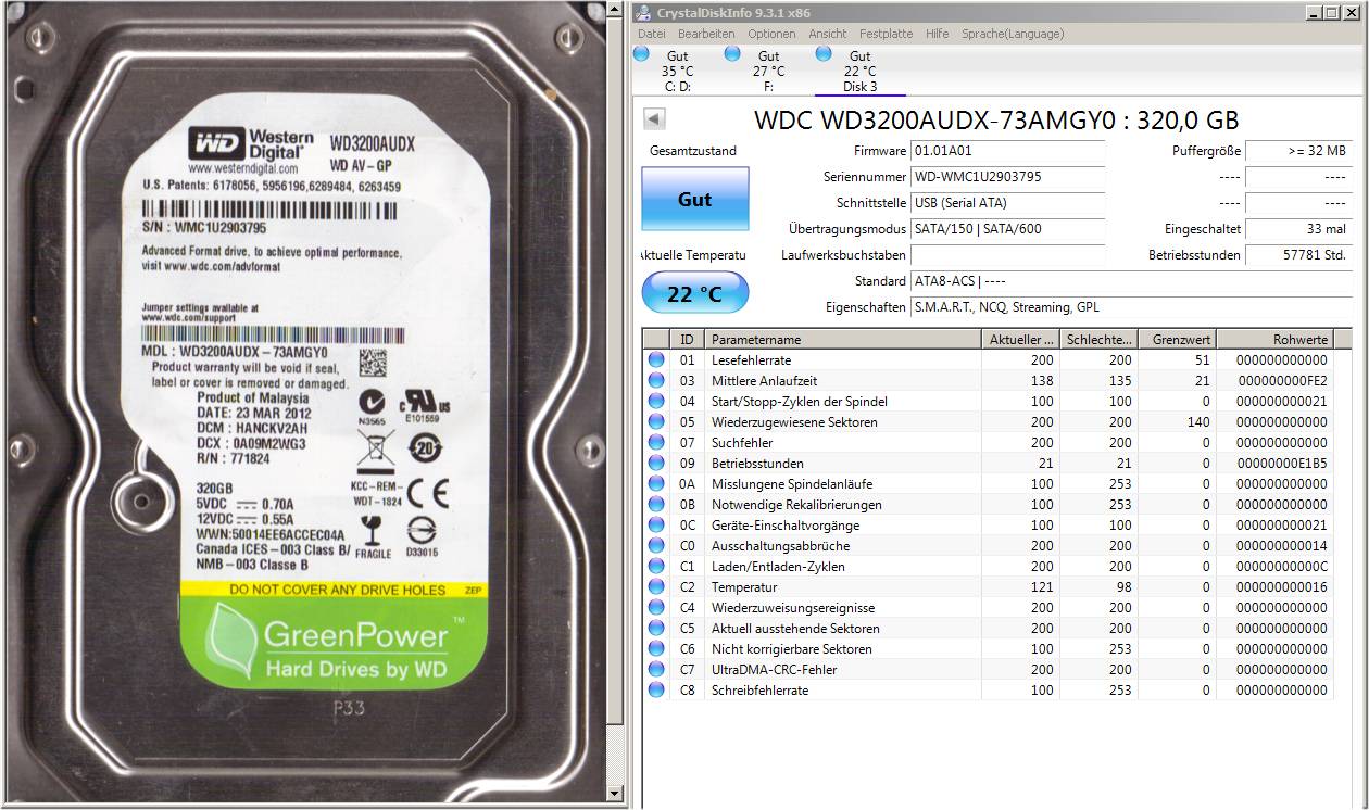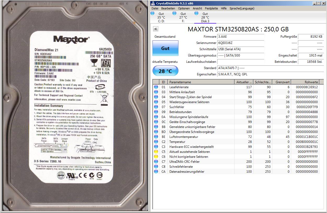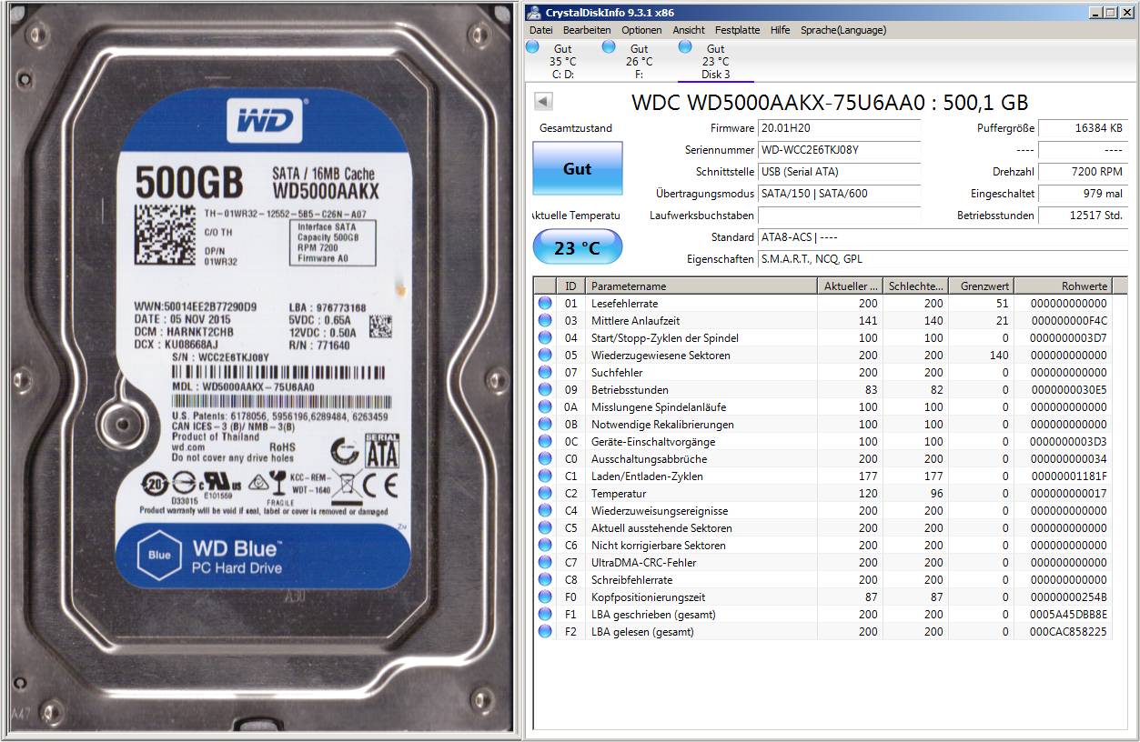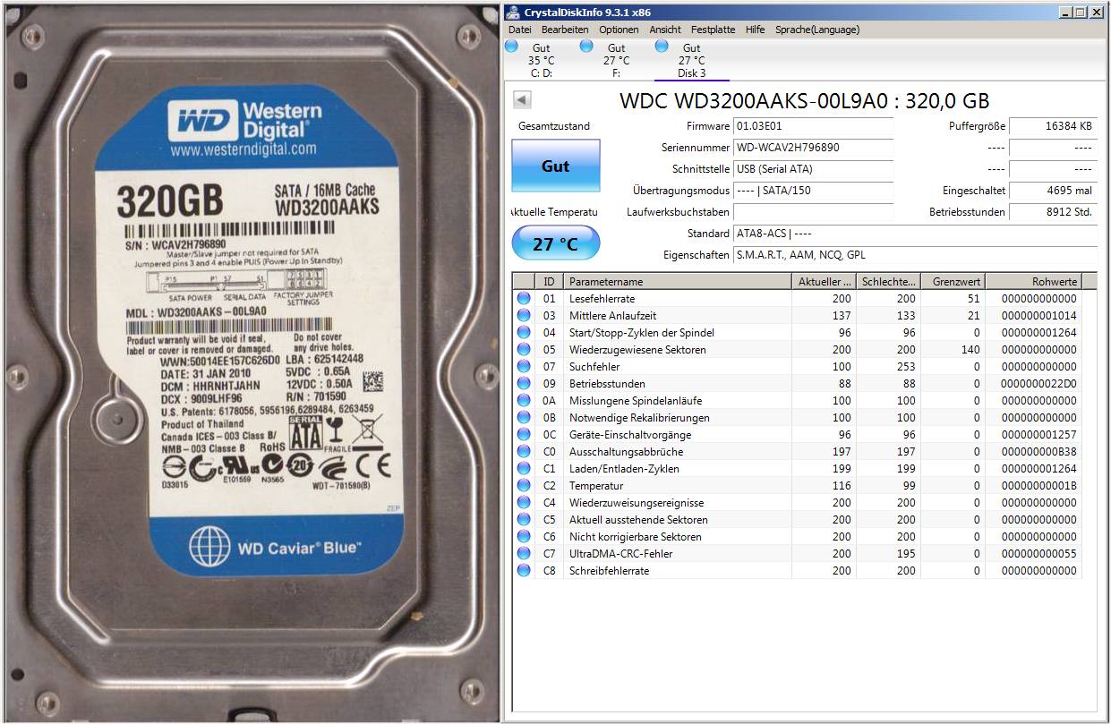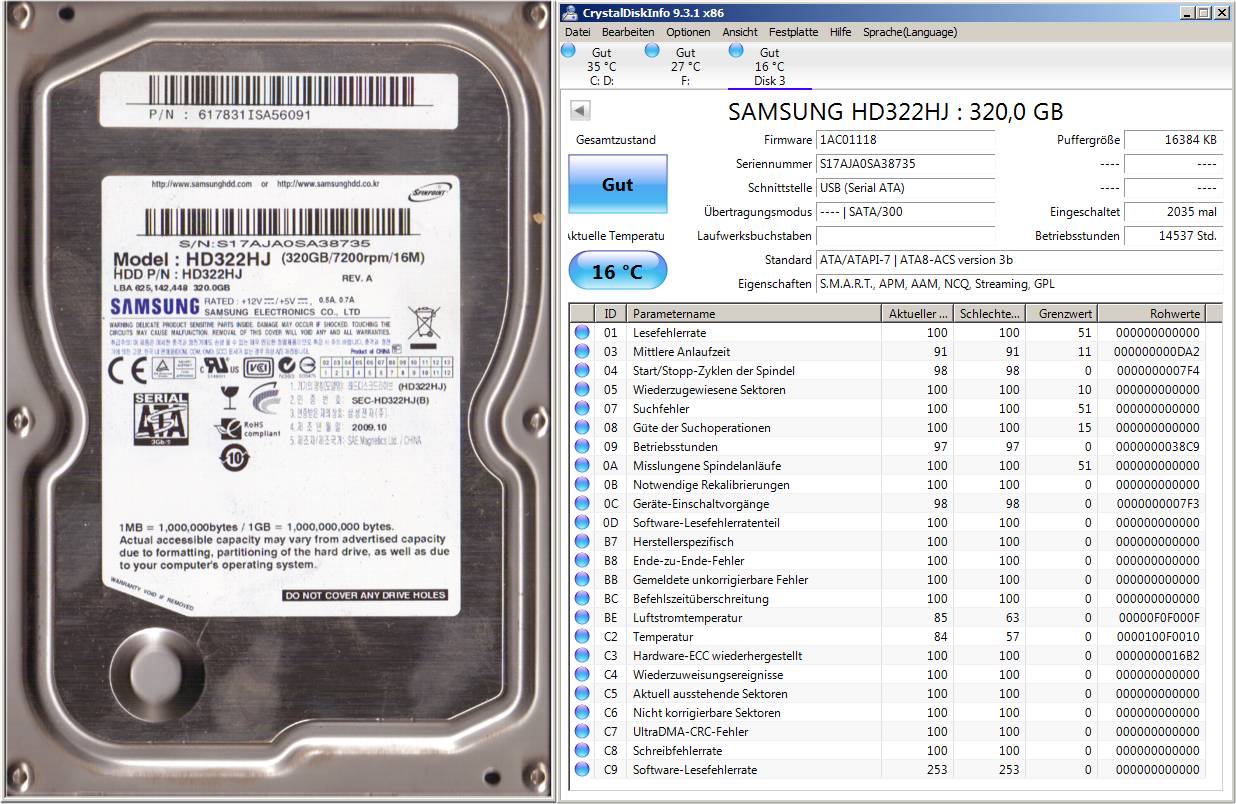 Ich biete hier mal ein paar gebrauchte HDD an, die mir für den Elektroschrott zu Schade erscheinen. Alle 3,5" SATA, Modelle siehe Fotos. Alle funktionstüchtig und getestet. Nur für den Aufwand des Testens stelle ich mir 1 Cent pro GB vor. Abholung in BI oder Versand 5,00€.(bleibt auch bei mehreren HDD gleich) Zahlung vorzugsweise per paypal. Bei Interesse PN bitte mit Angabe einer Antwort email Adresse. Privatverkauf, keine Gewährleistung oder Rücknahme