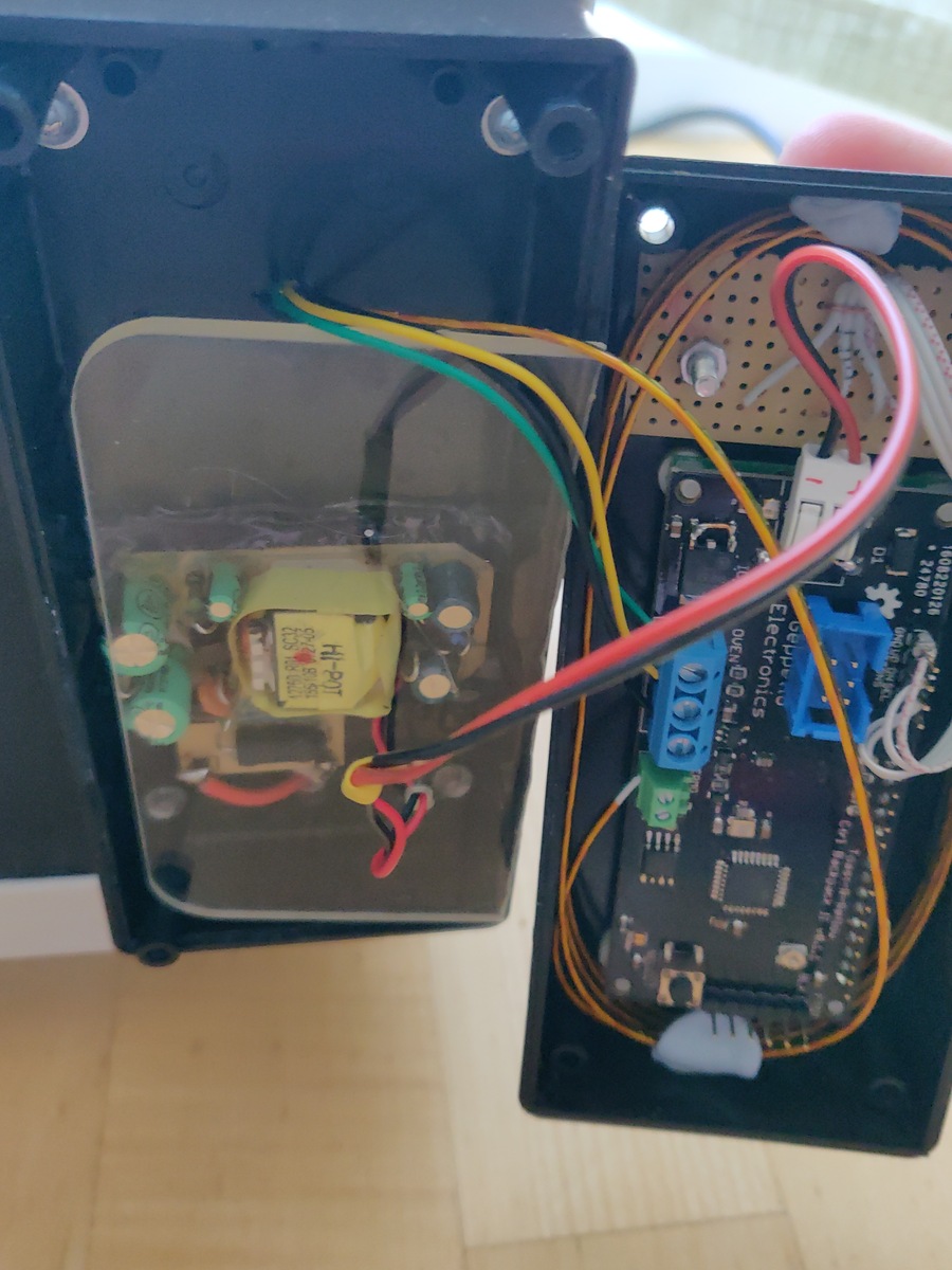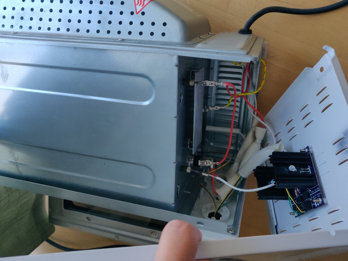 Hallo zusammen, Zum Verkauf steht ein fahrlässig umgebauter Pizzaofen. Hier die Fakten: https://www.euronics.de/haus-und-haushalt/kochen-und-backen/mini-backoefen/to-2054-mini-backofen-weiss-4055204234627 https://hackaday.io/project/3908-toast-r-reflow/ https://www.tindie.com/products/nsayer/toast-r-reflow-power-board-kit/ https://www.tindie.com/products/nsayer/toast-r-reflow-controller/ Das Ding ist ein elektrotechnisches Himmelfahrtskommando und verstößt sicher gegen sämtliche Vorschriften. Folglich sollte die Kiste nur von entsprechend fachkundigen Personen betrieben werden. 50€ (inkl. Versand) 35€ bei Abholung (München Ost) Matthias edit: Beim Betrachten der Fotos fällt mir auf, dass das Kabel des Temperaturfühlers auch unbedingt anders (weniger tödlich) verlegt gehört. Deshalb ziehe ich nochmal 10€ vom Preis ab: also 40€/25€