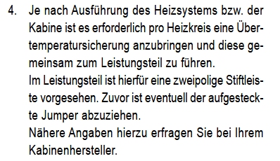 Die Steuerung IHS1 / IHF1 kostet neu etwa 220 Euro. Der Unterschied ist der Einstellbereich: Temperatur Infrarot-Folien-Heizsystem: (IHF) 30 - 50 Grad Celsius Temperatur Infrarot-Stab-Heizsystem: (IHS) 30 - 70 Grad Celsius > Die Kabine wurde im Zuge der Haussanierung abgebaut und nun > wieder aufgebaut. Problem: sie heizt nun nicht mehr. > 250 V liegen an der Platine bei den Auslässen an Dann liegt es nicht an der Steuerung, sondern an den Steckern, Leitungen oder Heizungen. Wenn das dein "Elektriker" nicht erkannt hat: suche einen anderen. Zitat aus der Anleitung: Die Montage darf nur durch einen Elektrofachmann oder einer vergleichsweise qualifizierten Person ausgeführt werden. Beitrag von Gerald B. (gerald_b) 29.12.2025 09:56: genau so ist es.