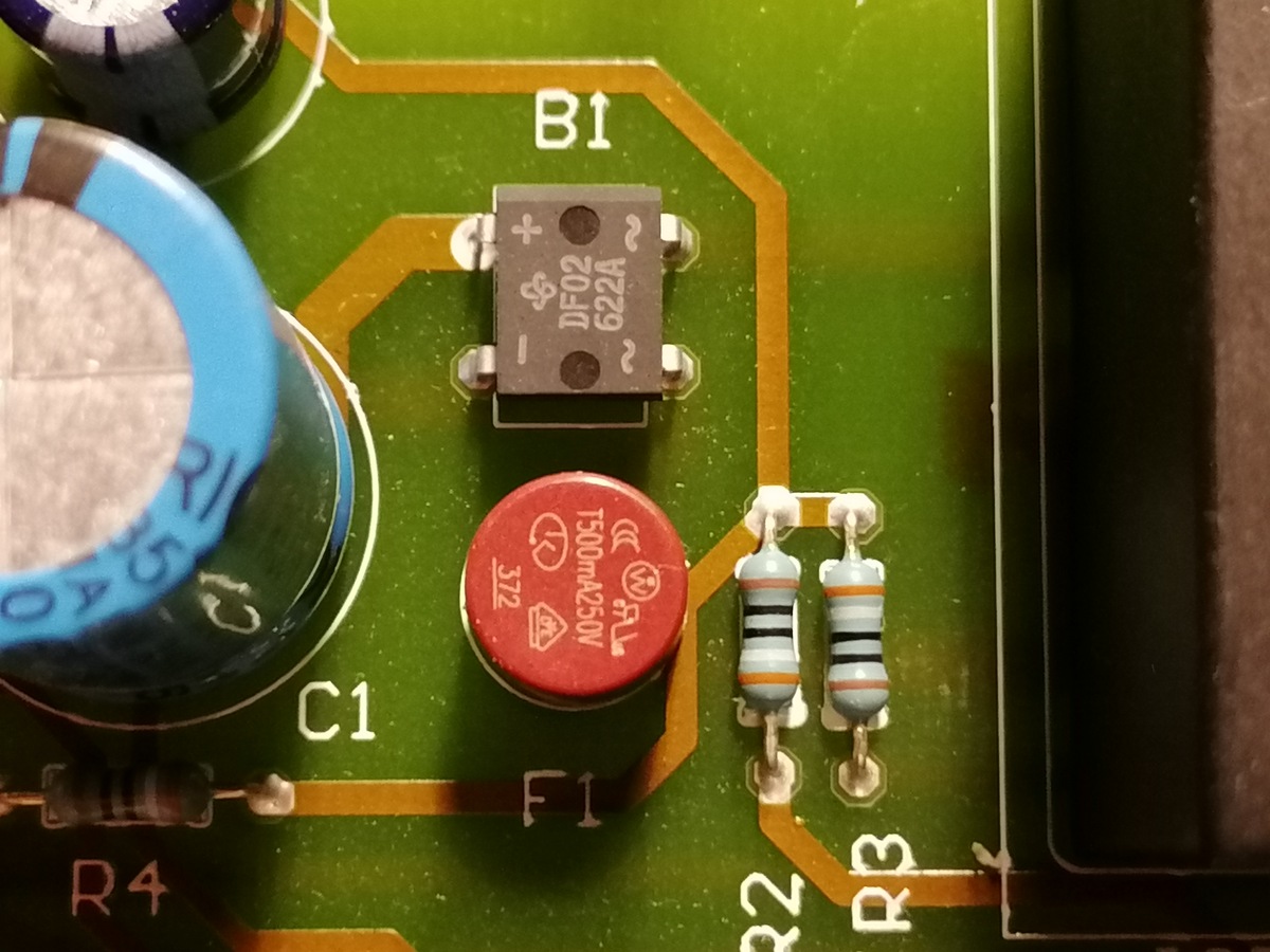 Danke, kann ich die Lötstellen der Widerstände bei R4 und R2 zum Testen der Sicherung nehmen (Durchgangsprüfung)? Die Sicherung ist ja oben geschlossen und auf die Unterseite der Platine komme ich grad nicht ohne Zerbohren (vernietet mit Halterung).