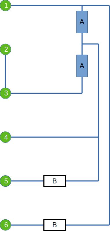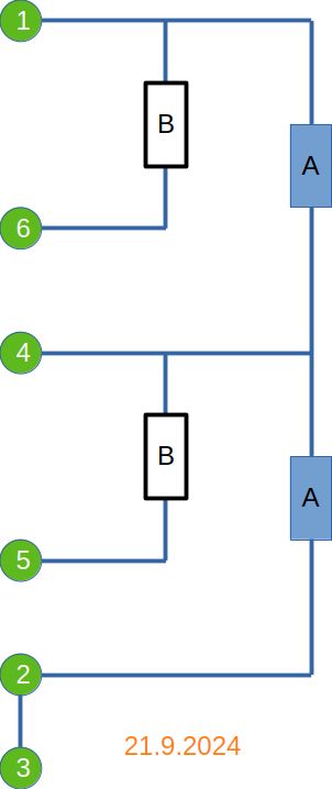 Hier der Stand der Ermittlungen am Sonntagmorgen. Es gibt 2 verschiedene Wicklungen Typ A (9 Ohm) und B (47 Ohm) - und die jeweils 2x. (BILDER) * A... dürfte die Hauptwicklung sein * B... die Hilfswicklung Das Bild sollte mit den gemessenen Werte übereinstimmen. Wie die 6 Enden jetzt mit der Platine verbunden sind ist mir noch nicht so klar?? Fortsetzung folgt.