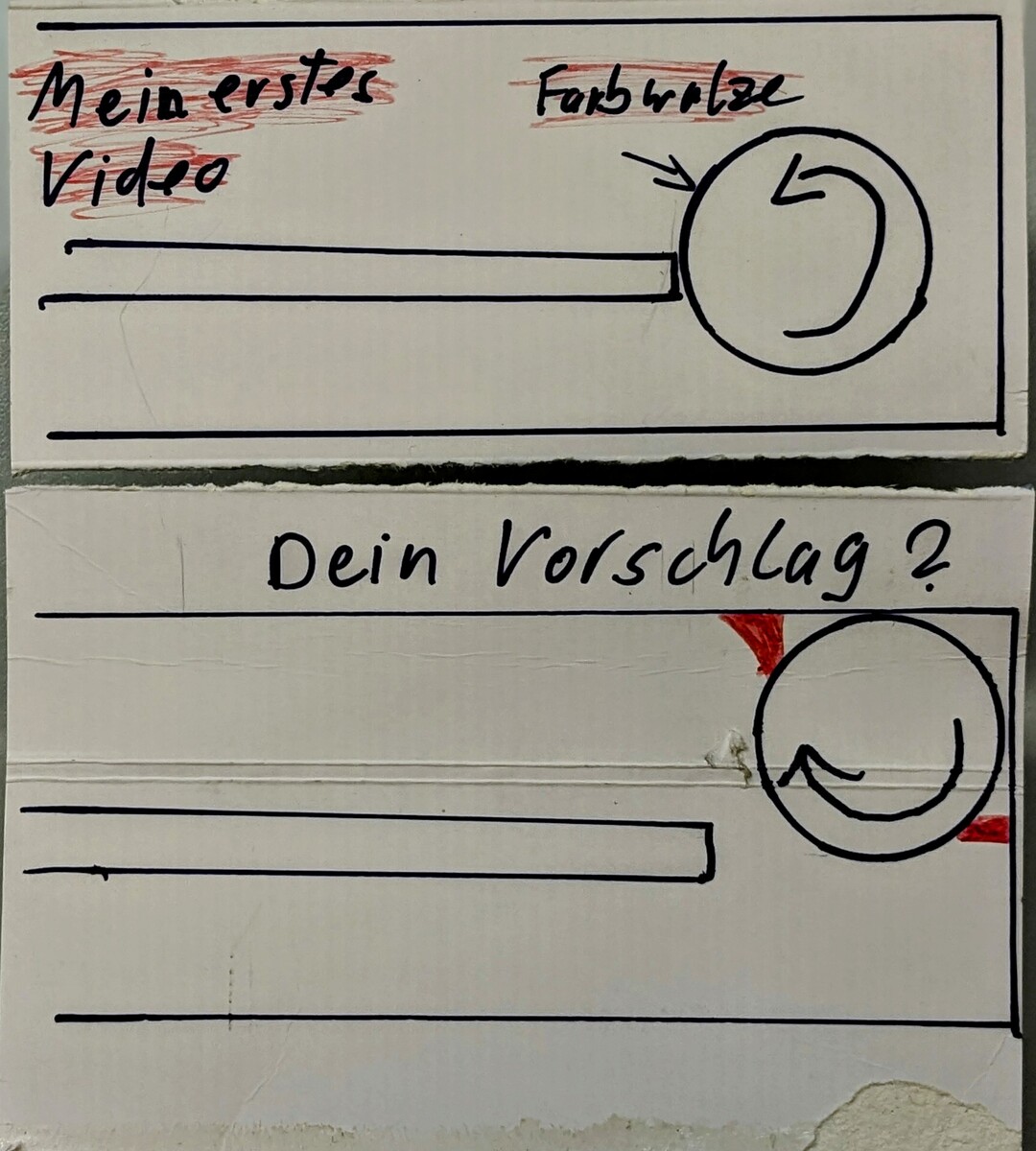 Thomas R. schrieb: > Hm. Ich war davon ausgegangen dass die Walze CCW dreht? Ja, hab mal die Situation mit der Farbwalze aus dem ersten Video und deinen Vorschlag skizziert. Mögliche Leitbleche in rot.
