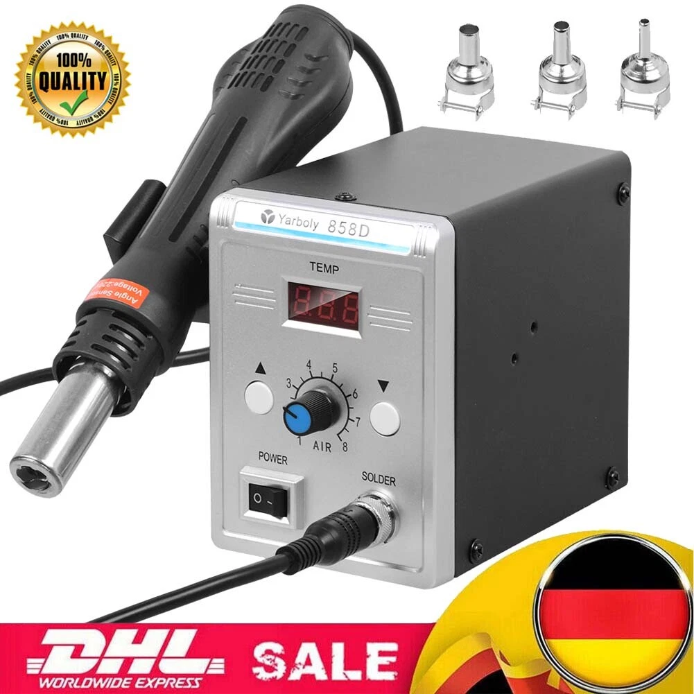 Also ist es völlig wurscht, welches 858D-Modell ich kaufe, ob diese https://i.ebayimg.com/images/g/VgAAAOSwPJBl2VYd/s-l1600.webp oder dieses https://i.ebayimg.com/images/g/GOYAAOSwTc9mVVN5/s-l1600.webp als die derzeit bei ebay hauptsächlich angebotenen Modelle. Ob nun mit Stecker für den Griffel oder fest verdrahtet, wenn angeschlossen oder immer ausgeschaltet wenn ausgesteckt ist es ja wurscht. Und alles andere scheint, wie ihr sagt, ohnehin Zufall zu sein. Die Beschreibung ist nach meinem Verständnis bei allen gleich und auf irgendwelche konkreten Auskünfte der chinesischen Verkäufer braucht man erst gar nicht zu hoffen. Ich hatte die Hoffnung, daß jemand aktuell ein Gerät gekauft hat und "empfehlen" kann. Empfiehlt es sich, weitere Düsen zu kaufen? Da gibt es so neckische Modelle mit im Quadrat angeordneten Schlitzen ...