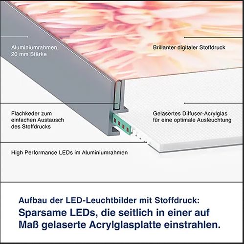 > Gegen was soll es isoliert werden? > Oder wäre auch eine "Rückwand" ausreichend? Ähnlich doppelter > Schwibbögen. > Zeig am Besten so ein fertige Led Bild. Eben, aber das will der TO grad bauen. Im Anhang mal eine Beispielkonstruktion nach https://erlerundpless-shop.de/de/led-leuchtbild/led-leuchtbild-farbexplosion Wohl ein (von hinten) beleuchtes Textil, keine n mal m -LED Matrix wie man auch vermuten könnte.